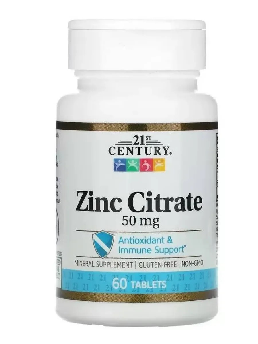 | Комплектация | Таблетки цитрата цинка 21st Century 50 мг, 60 шт. 1 шт |