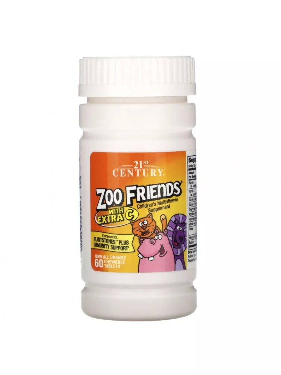 21st Century Zoo Friends with Extra C — это мультивитаминная добавка для детей в виде жевательных таблеток с добавлением витамина С для поддержки здоровья иммунной системы.