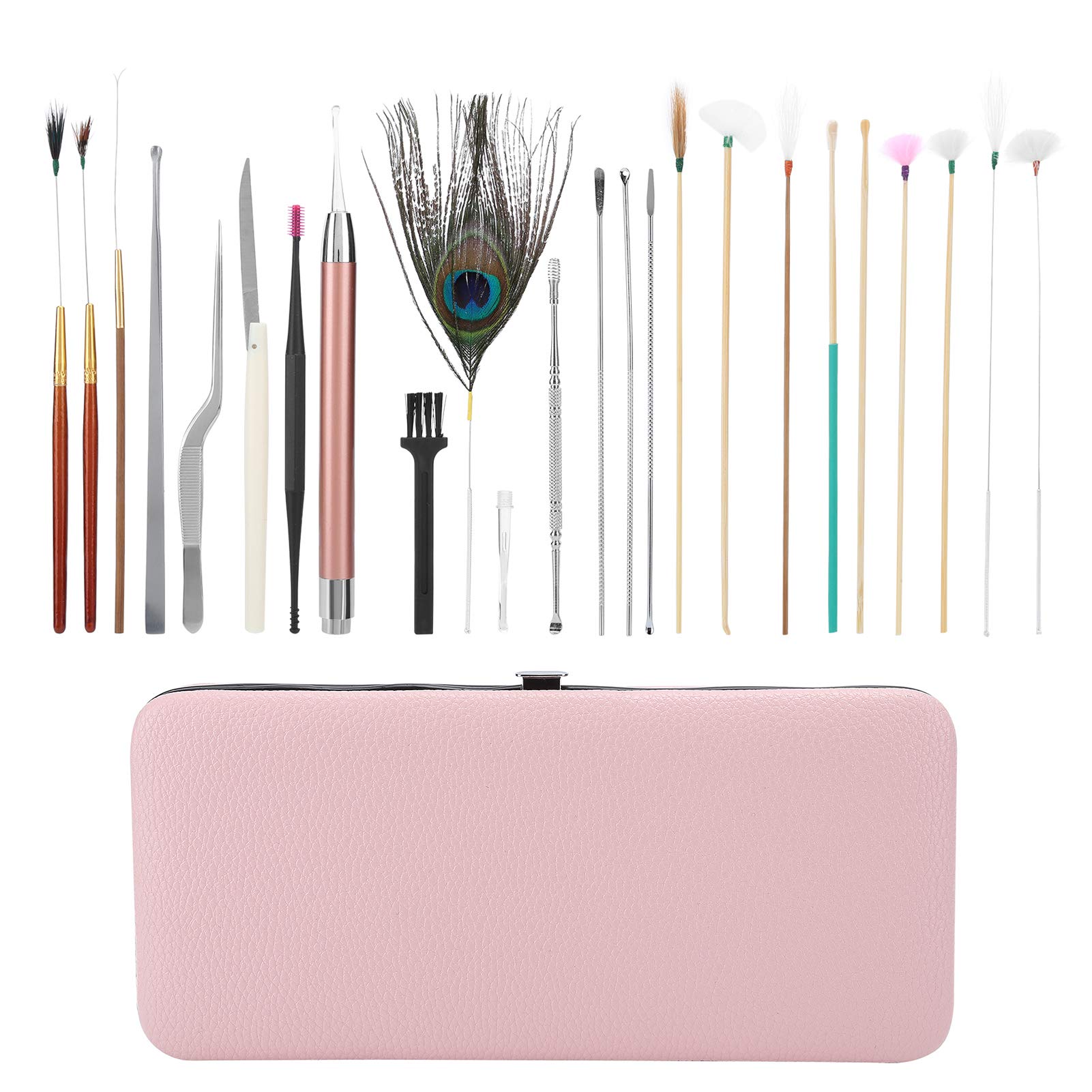 23pcs Ear Wax Removal Tool Sets Professional Ear Pick Earwax Removal Kit Ear Wax Removal Tool Set Double Ended Ear Scoop Spoon Ear Care with Cleaning Brush and Storage Box (23 23 Pieces Cherry Powder Ear Picking Set