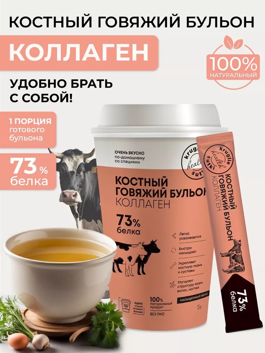 Круглые сутки Костный бульон с коллагеном говяжий, стакан