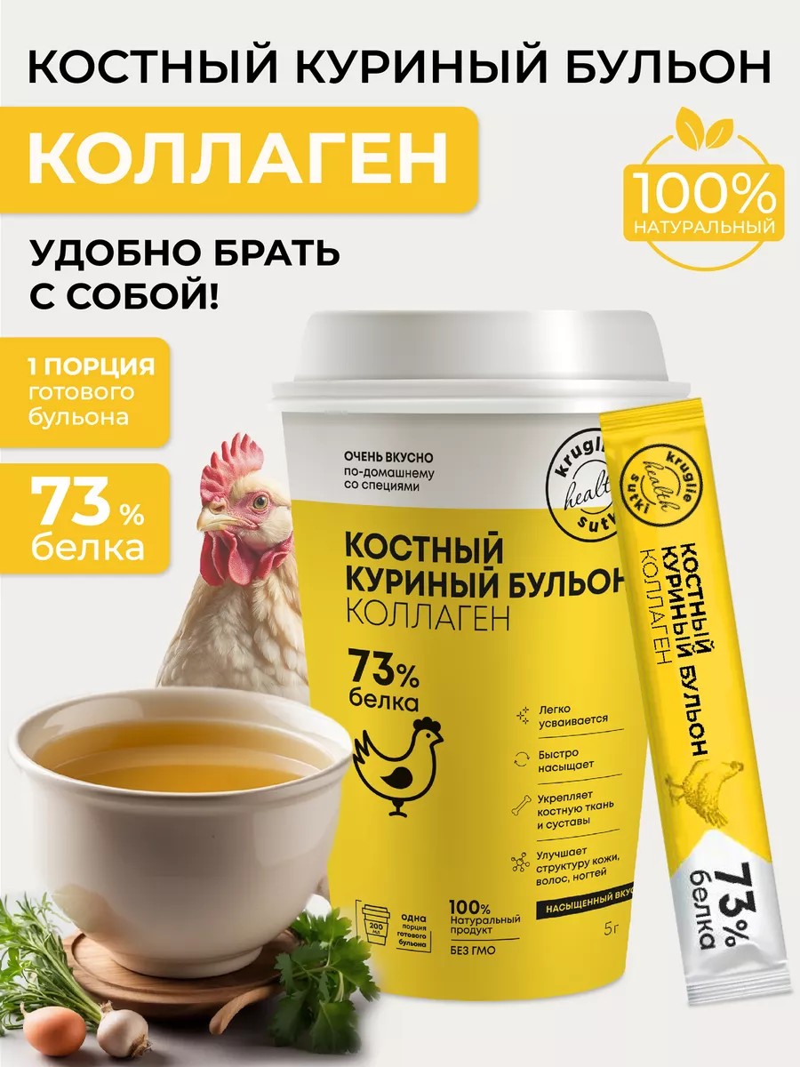 Круглые сутки Костный бульон с коллагеном куриный, стакан