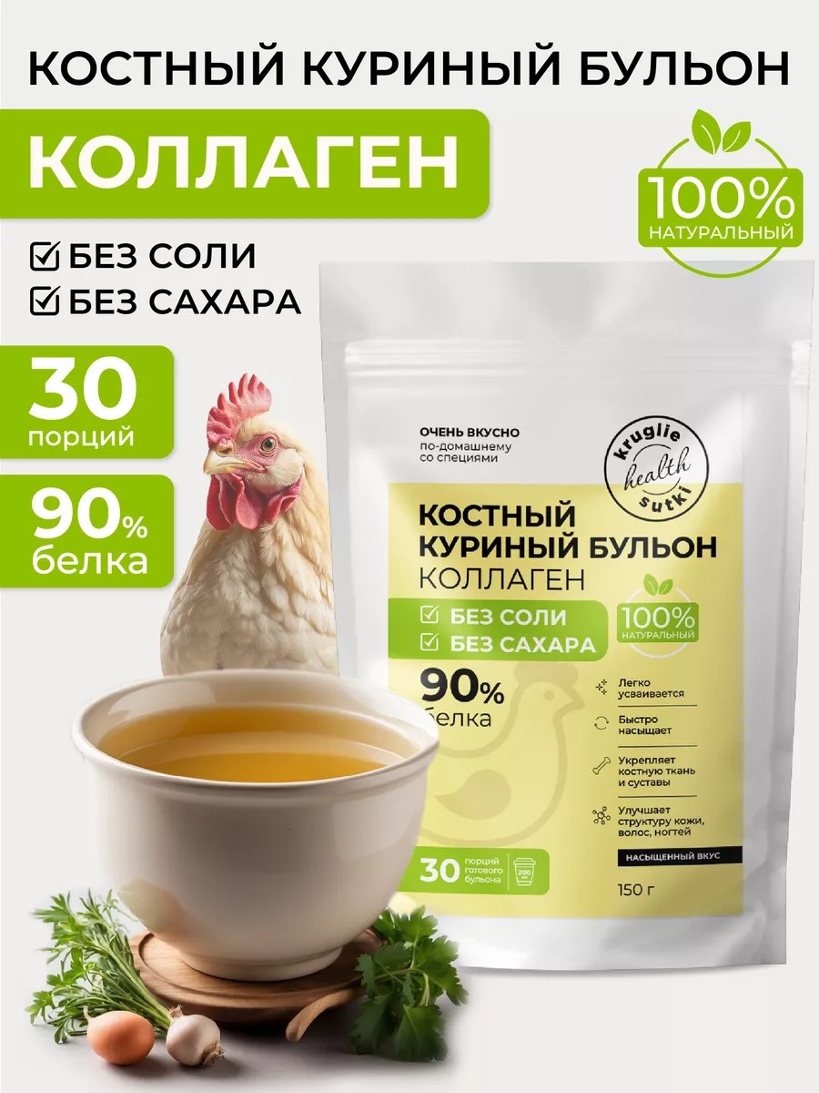 Круглые сутки Костный бульон с коллагеном куриный без соли, 150 г