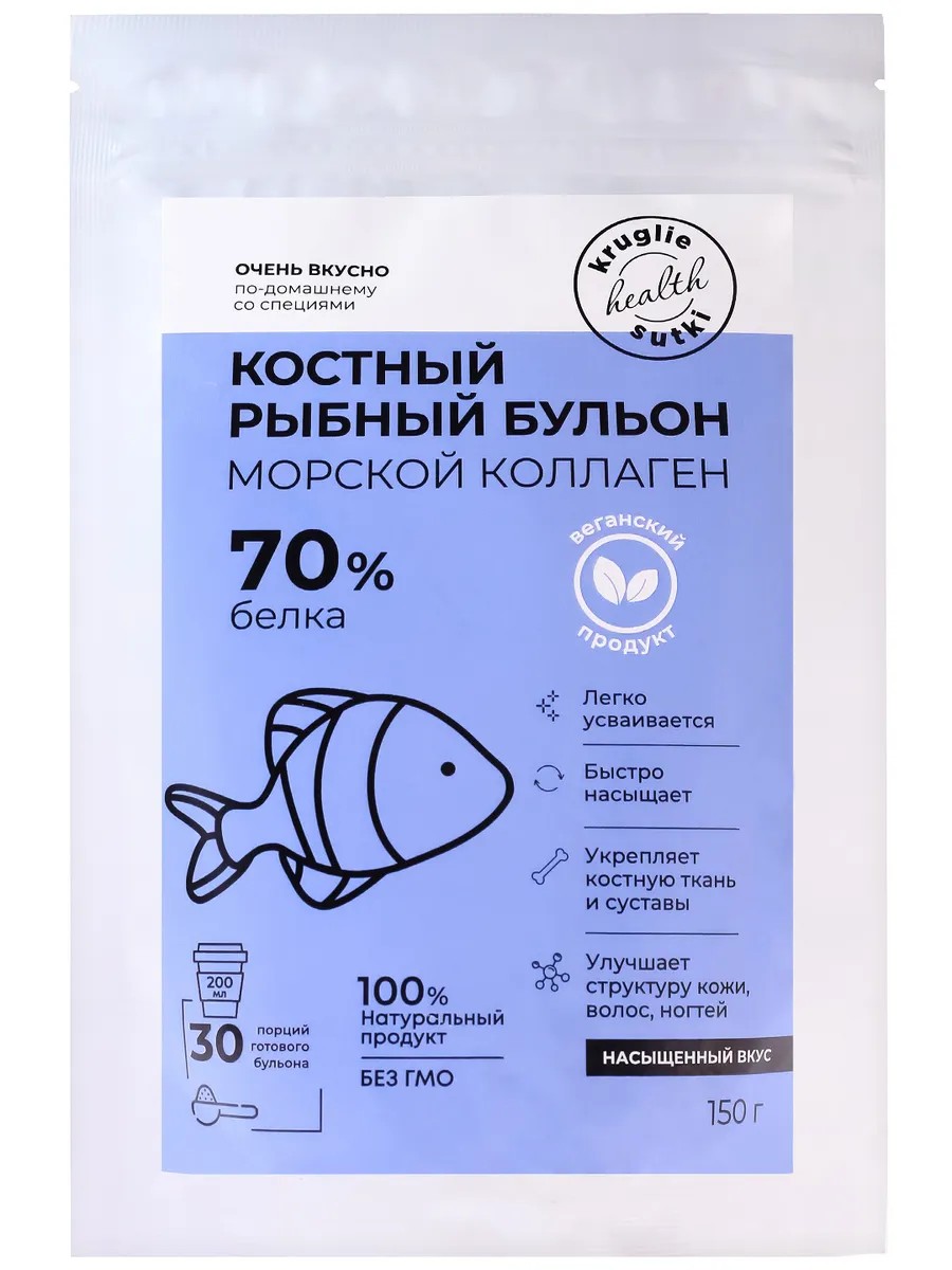 Круглые сутки Костный бульон с коллагеном рыбный сухой 150 г