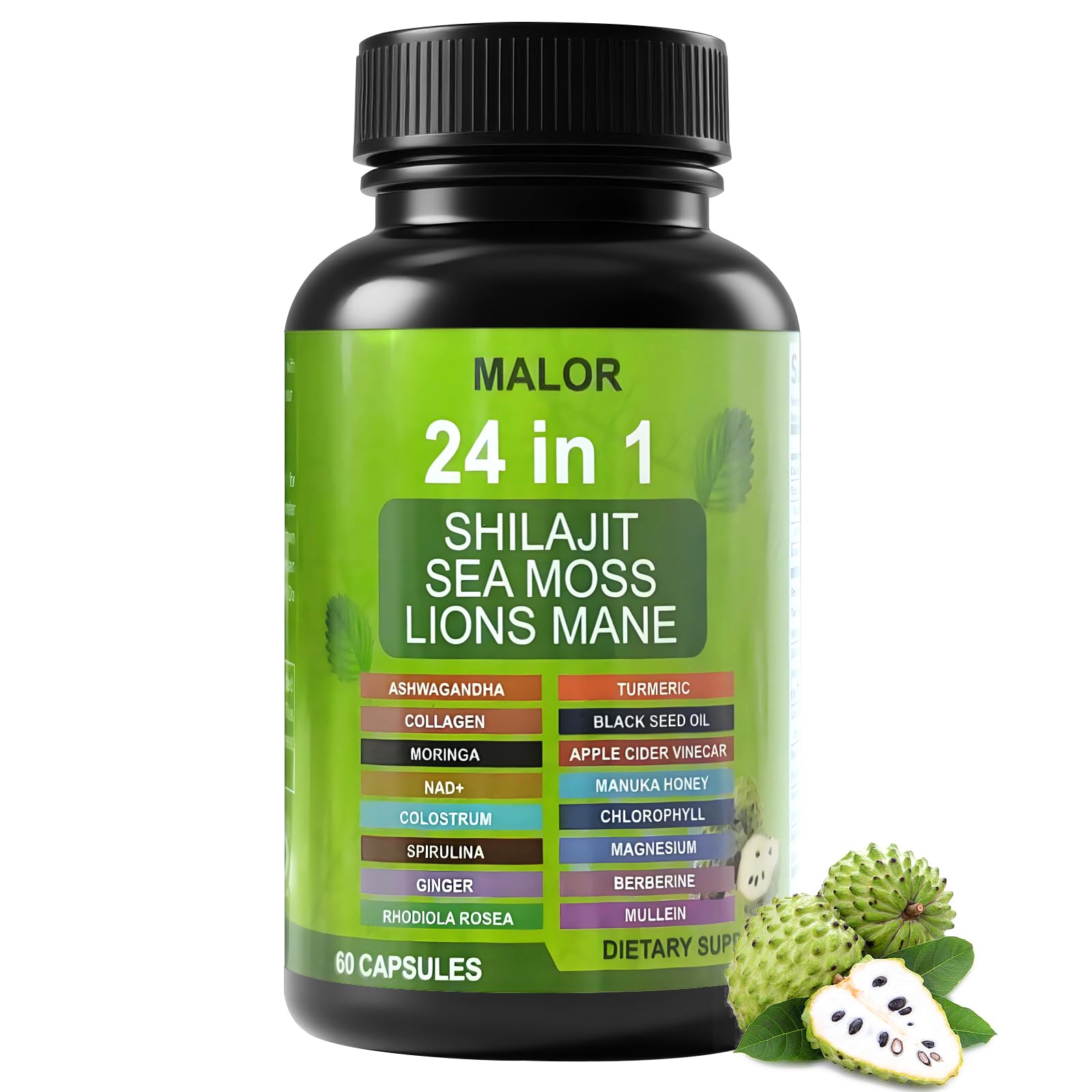 24 in 1 Soursop Graviola Capsules - Herbal Supplement with Shilajit Sea Moss Turmeric Ashwagandha - Vegan Non-GMO 60 Capsules (1)