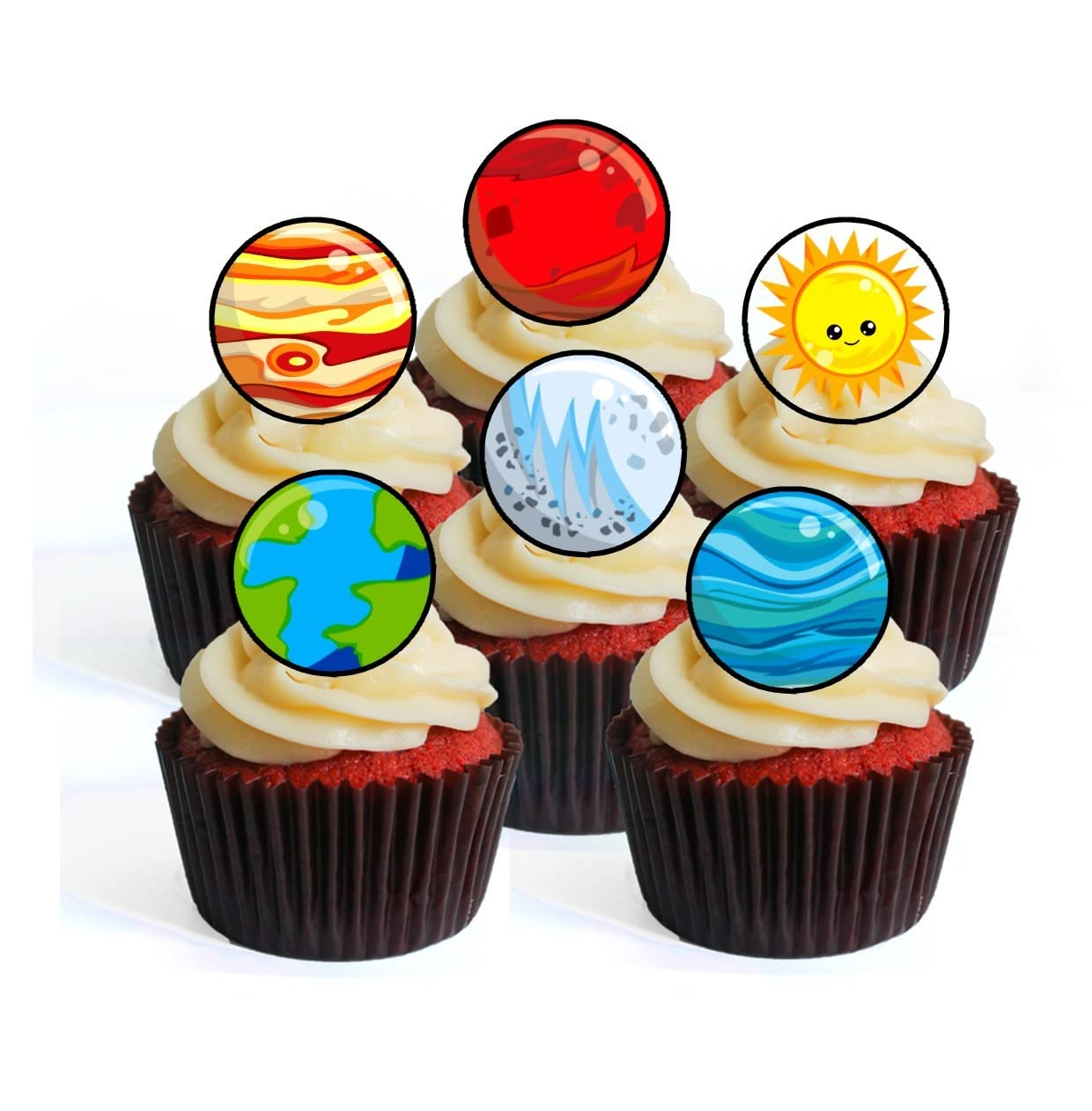 24 Space Theme #3 Edible Cupcake Toppers - Stand Up Disc Wafer Cake Decorations