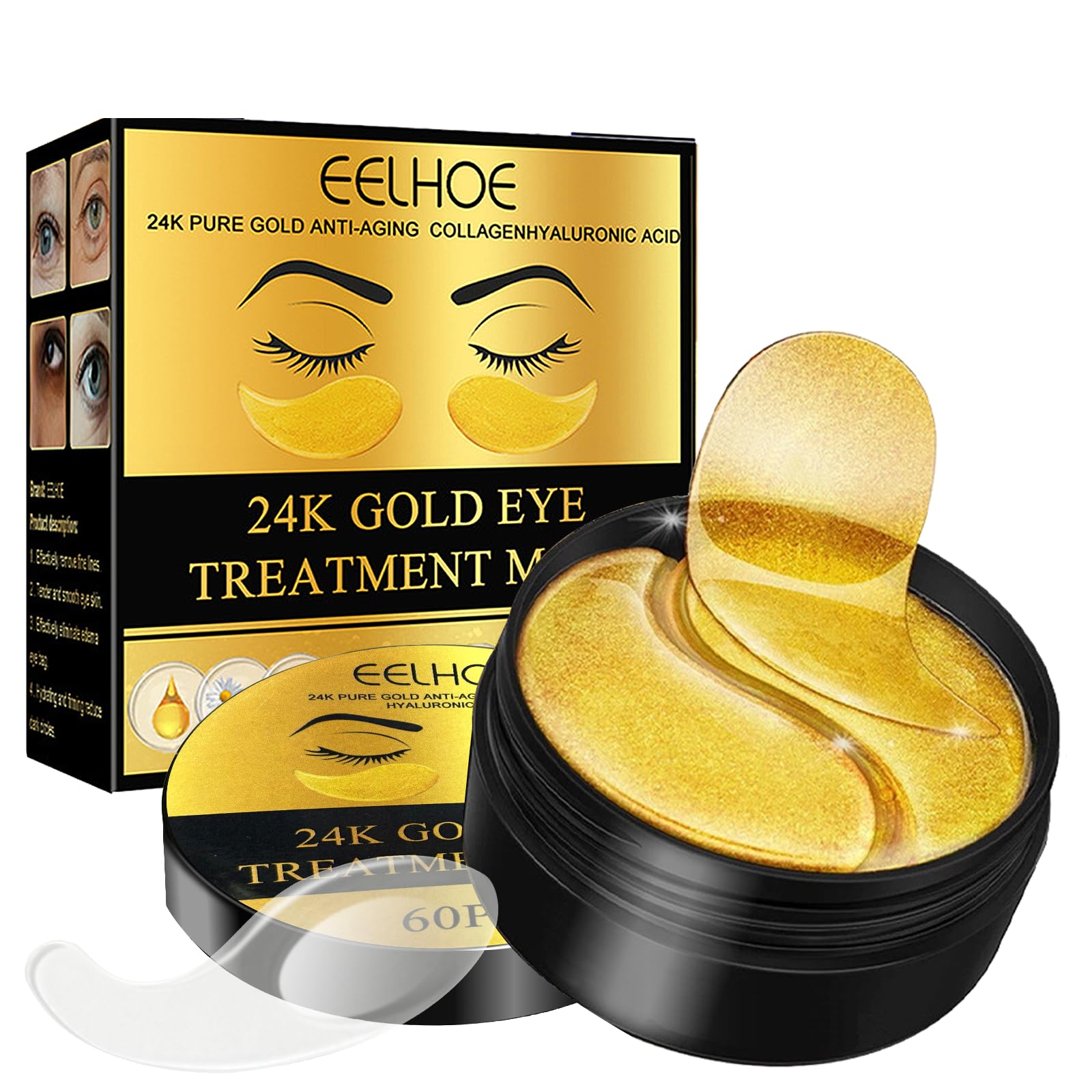 24K Gold Eye Mask Under Eye Gel Patches and Collagen Eye Patches are suitable for puffy eyes and dark circles effectively improving eye bags fine lines and wrinkles - Under Eye Patches (60 pieces)