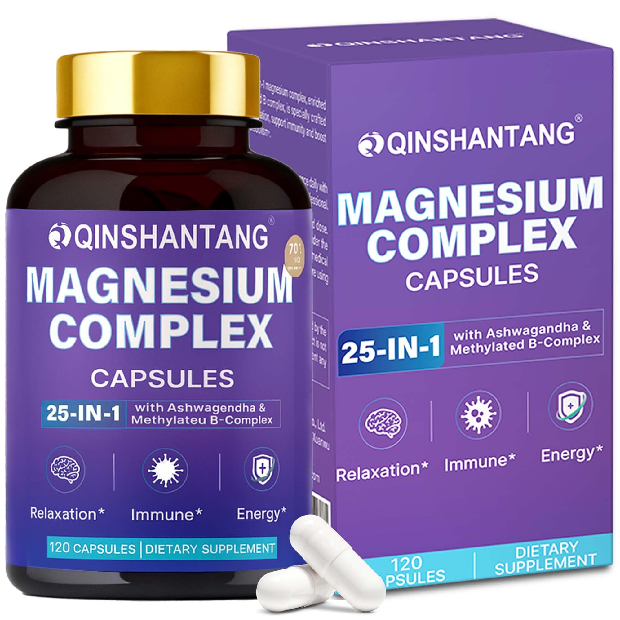 CLEAN, TESTED TRUSTED QUALITY: Crafted in cGMP-certified facilities using Non-GMO, Gluten-Free, Soy-Free, and Vegan ingredients. Free from artificial colors, flavors, and preservatives. Each batch is tested for purity, potency, and safety to ensure clean, high-quality nutrition you can trust. 60 SERVINGS HIGH ABSORPTION: Each bottle includes 120 vegan capsules, Take 2 capsules daily with water. Delivering a high-potency formula designed for superior absorption. Featuring chelated forms of magnesium for enhanced bioavailability and gentle digestion, it's enriched with 640 IU Vitamin D3 and 96.4 mcg Vitamin K2 (MK-7) to optimize magnesium and calcium utilization. RELAXATION, ENERGY VITALITY SUPPORT: This adaptogenic magnesium complex for women and men combines Magnesium Glycinate Capsules and Methylated B Vitamins to support calm relaxation, balanced mood, and steady energy. With Ashwagandha Extract, it promotes focus, inner balance, and overall well-being - helping you stay calm and energized through work, recovery, or rest. 13 METHYLATED B COMPLEX ASHWAGANDHA: Includes a full Methylated B-Complex (B1, B2, B3, B5, B6, B7, B9, B12, Choline Inositol) plus 100mg Ashwagandha Extract (10:1, equivalent to 1000mg root). These active nutrients help support energy metabolism, mental focus, and adaptogenic balance for daily vitality and stress resilience. 12 MAGNESIUM BLEND: Advanced 12 in 1 Magnesium Complex delivering 700mg per serving with 12 highly absorbable magnesium types - Magnesium Glycinate 400mg, Malate 100mg, Taurate 100mg, plus Citrate, Gluconate, Carbonate, Chloride, Aspartate, Ascorbate, Lactate, Succinate, Phosphate, and Picolinate. This balanced blend supports muscle relaxation, nerve function, and overall well-being.