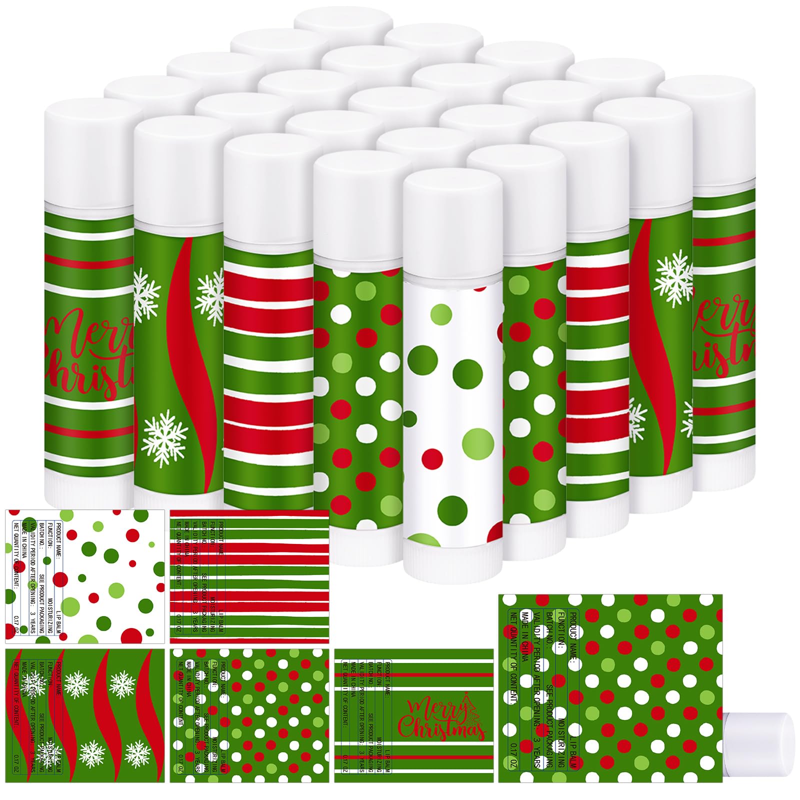 Features: With 25 lip balms in total 5 patterns of 5 each, this Christmas peppermint lip balms set is more than enough for personal daily use. You can easily share these Mint flavored Christmas lip balms with loved ones, spreading the joy of the holiday season and keeping everyone's lips moisturized. This lip balm set is a wonderful gift. As Christmas goodie bags stuffers or standalone presents, its themed design, moisturizing function and safe ingredients make it a thoughtful gift. Whether for family, friends or colleagues, it brings both practical care and festive cheer. Specifications: Material: squalane, beeswax Color: red, green, white Size: 7 x 1.7 cm 2.76 x 0.67 inch Package includes: 25 x Christmas lip balms Notes: Manual measurement, please allow slight errors on size. The color may exist a slight difference due to different screen displays.Applicable for Various Occasions: the chic design of these Christmas peppermint lip balms makes them suitable for and appreciated by people of most ages They are applicable to various occasions beyond Christmas, including Halloween, winter, New Year's, Valentine's Day, holidays, wedding parties, anniversaries or any other occasion, creating a strong festive atmosphere, and can also be a gift for mothers, sisters, colleagues, or friends. Christmas Theme Design: each Xmas lip balm is designed according to the inspiration of the Christmas tree decorative ball The five designs are different, and the main colors are red, green and white This attractive color combination adds a contemporary and stylish touch to the traditional Christmas, making them stand out and adding an element of elegance to your festive decorations. Safe Ingredients: our Christmas goodie bag stuffers utilize reliable materials Lip balm bulk contains squalane, beeswax and other safe ingredients They are very effective for dry lip Non greasy, mild and non irritating. Moisturize Your Lips: the Christmas peppermint lip balms have been meticulously formulated to provide intense nourishment, these moisturizing lip balm bulk rids you of the discomfort of chapped lips, thus allowing you to maintain a smooth and healthy lips After frequent use your lips are as soft as ever. Christmas Party Supplies Bulk: this lip balm set includes 25 pack lip balms inspired by Christmas tree decoration ball These mint flavored Christmas lip balm add atmosphere to your theme party and promote friendship among friends This lip balm set has five different design patterns There are five lipstick in each pattern, 25 lip balms in total Abundant quantity, enough to meet your daily needs, you can also share with your family or friends.