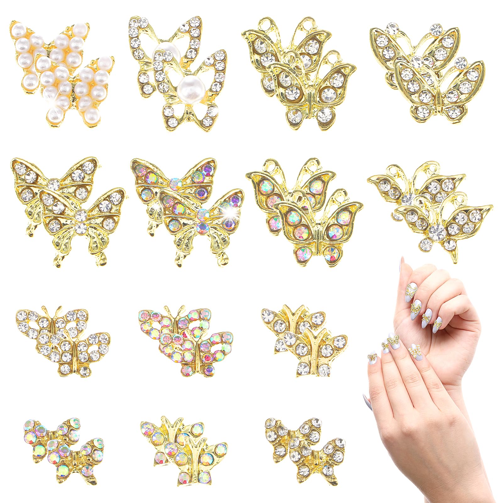 Widely ApplicableThese butterfly decorations can not only be used for 3D nail art, but also can be used to decorate phone cases, clothes, shoes, cards, DIY crafts, etc. Easy to UseThese gold butterfly nail charms are small and lightweight, easy to install, and can be perfectly matched with other nail ornaments to create a delicate nail shape. High-Quality MaterialThese 3D diamond nail charms are made of stainless steel metal, sturdy, reliable and durable, not easy to fade and break, can serve you for a long time. 3D DesignThese nail ornaments are designed in three-dimensional butterfly shape, vivid and realistic, shining and eye-catching, making your nails look elegant and special. Great Value SetYou will receive 28pcs butterfly nail charms in 14 styles, 2pcs for each style. Sufficient quantity and rich styles meet your daily nail art design needs.