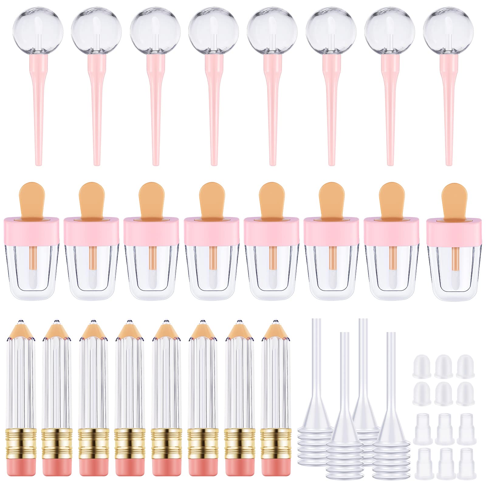 28 Pcs refillable empty lip gloss tube tool set, 8 pcs Ice-cream shaped lip balm tubes 8 pcs pencil shaped lip gloss containers 8 pcs lollipop shaped plastic tube containers with 4 pcs mini funnels Features: Cute and practical: The refillable empty lip balm tubes are designed as different shapes like pencil shape, lollipop shape and ice-cream shape, novel designs matching with pink makes them look cute and delicate, full of sweat and romantic flavor. Transparent tube body design is convenient for you to check the remaining amount and plastic funnels can help you fill the containers easily. Wide applications: The cute plastic lip gloss containers come with inserts, which can provide nice sealing performance and help you apply lip gloss conveniently, they are suitable for storing lip gloss, lip balm, lip oil and other things and carry around. They are re suitable for making lipstick samples, you can make different craft projects for your friends and family members, can be applied as birthday gifts, party gifts, holiday gifts and more. Specification: Material: plastic Color: as the picture shown Package include: 8 x Ice-cream shaped empty lip gloss tube 8 x Lollipop shaped lip gloss containers 8 x Pencil shaped empty lip gloss tubes 4 × Mini funnel 24 x Inserts Note: The color may exist slight difference due to different screens.Lovely gifts: the empty lip gloss tube containers are suitable for making lipstick samples, you can make different craft projects for your friends and family members, can be applied as birthday gifts, party gifts, holiday gifts and more, the lip balm containers are lightweight and portable, bringing much convenience for daily life. Meet different use: the cute plastic lip gloss containers come with inserts, which can provide nice sealing performance and help you apply lip gloss conveniently, they are suitable for storing lip gloss, lip balm, lip oil and other things and convenient to carry around, keeping you beautiful all the time. Durable to use: the multi-shaped lip gloss tubes and mini funnels are made of plastic, non-toxic and odorless, they are easy to clean and refillable, transparent tube body design is convenient for you to check the remaining amount and plastic funnels can help you fill the containers easily. Cute and novel: the refillable empty lip balm tubes are designed as different shapes like pencil shape, lollipop shape and ice-cream shape, novel designs matching with pink color makes them look cute and delicate, full of sweat and romantic flavor, which can meet different aesthetic tastes and bring people good moods. Sufficient quantity: the package includes 24 pieces of lip gloss tube containers in 3 different designs and each design has 8 pieces, 4 pieces of mini funnels, enough quantity can satisfy your different daily use and DIY craft use.Best Sellers Rank: See Top 100 in Beauty & Personal Care. Product Care Instructions: Hand Wash Only. Product Dimensions: 0.39"W x 0.39"H. Color: Multi. Material: Plastic. Brand: Shappy. : B08B8DG1BN. Manufacturer: Shappy. Item model number: Shappy-Lip Gloss Tube-01. Product Dimensions: 0.39 x 0.39 x 0.39 inches; 11.99 Ounces.