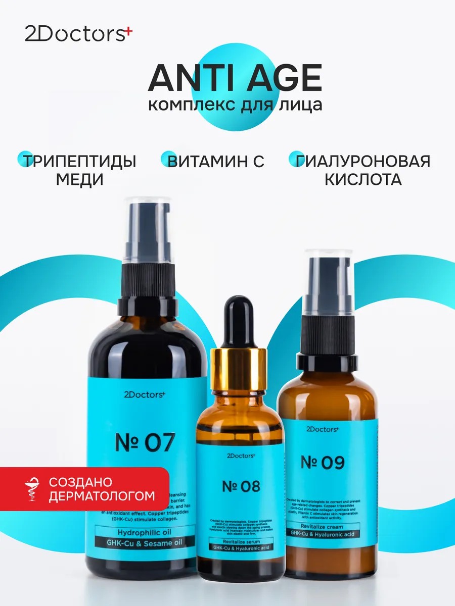 Антивозрастной набор по уходу за кожей лица 2Doctors: гидрофильное масло, сыворотка, крем, — профессиональный комплекс, разработанный врачом-дерматологом для ежедневного ухода и борьбы с возрастными изменениями кожи. Средства подходят для всех типов кожи, включая сухую, чувствительную, комбинированную и склонную к жирности. Набор направлен на восстановление упругости, выравнивание тона, уменьшение морщин и сохранение естественного сияния кожи.