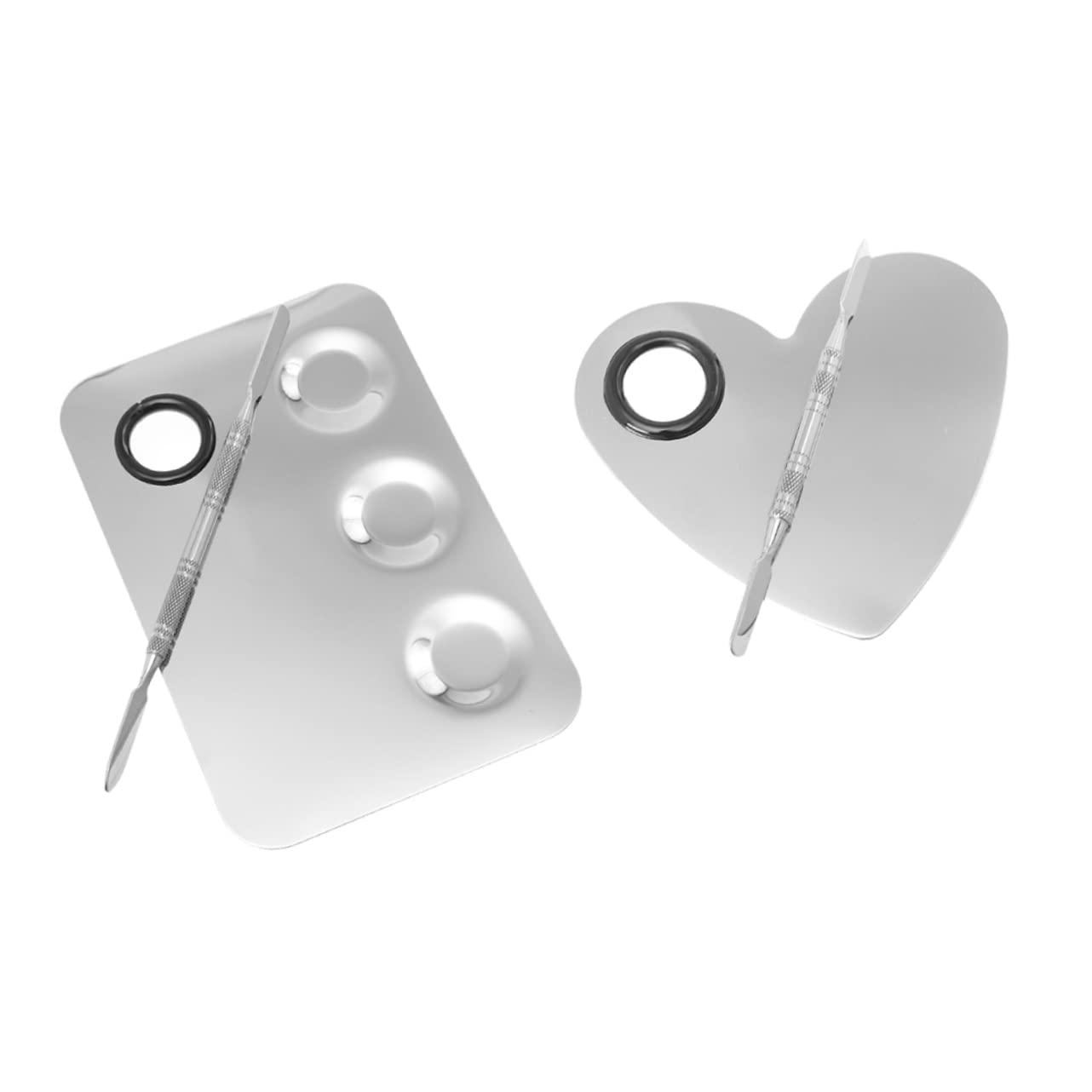 Mixing palette kit: Its smooth, flat stainless steel texture is easy to clean and doesn't stain easily. Makeup palette mixer. Nail color mixing: Perfect for use in beauty salons and professional nail art shops, these palettes are practical and versatile. Makeup palette tray. Makeup palettes: The hole on the top makes it convenient to hold or use, providing you with great convenience. Makeup mixing palette with spatula. Stainless steel makeup palette: The manicure spatula set is designed for nail polish, nail paint, pigment mixing, and makeup color mixing. Makeup mixing: Comfortable to the touch, with a good selected texture and a smooth surface. Stainless steel palette.
