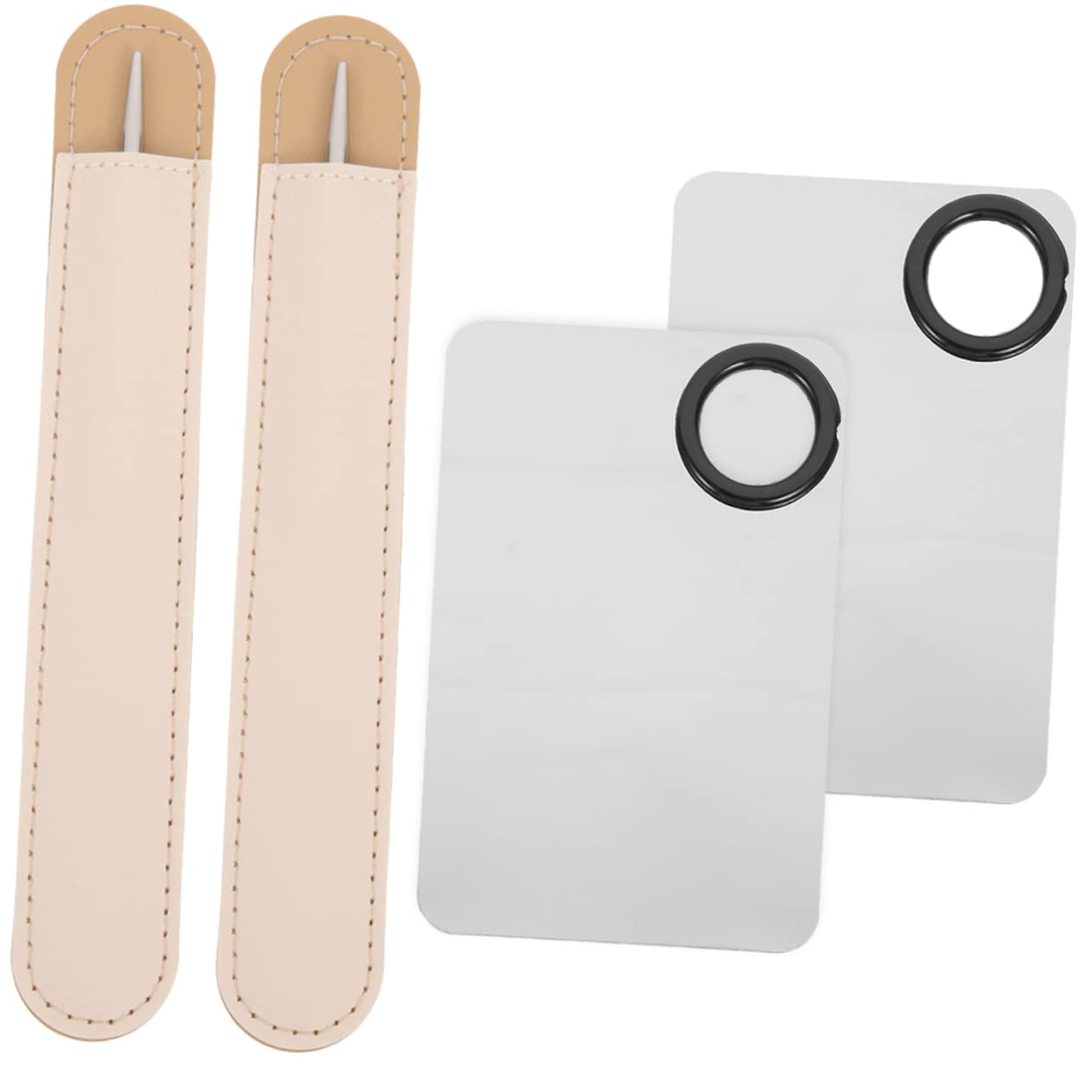 Package List: 2 x spatulas, 2 x leather cases, 2 x mixing plates. Features: - Size: 17.50 x 10.00 x 0.30 cm 6.88 x 3.93 x 0.12 inches (mixing plate) - Color: Assorted colors foundation mixing tray - Material: Stainless steel handheld makeup mixing palette - Lightweight, small, and easy to carry, this is a makeup mixing tray for professional makeup artists. This pigment tray is ideal for holding your pigments. Its unique design and makeup spatulas make it lightweight, compact, and easy to carry. - Although simple in design, it is very practical to use. You can easily use this makeup mixing plate. - The useful pigment container is perfect for artists, makeup artists, professionals, students, and children for arts, crafts, and much more. - This product is suitable for amateurs, professionals, or as a makeup tool for salon nail art mixing plates. Product Information: Color Mixing Tray. Its craftsmanship and reasonable design make it easy to use. Makeup Mixing Palette: This is a practical mixing tray, made of good material, safe and convenient, with a wide range of uses. It's a tool accessory for painters, artists, makeup artists, art students, children's painting, or DIY projects.