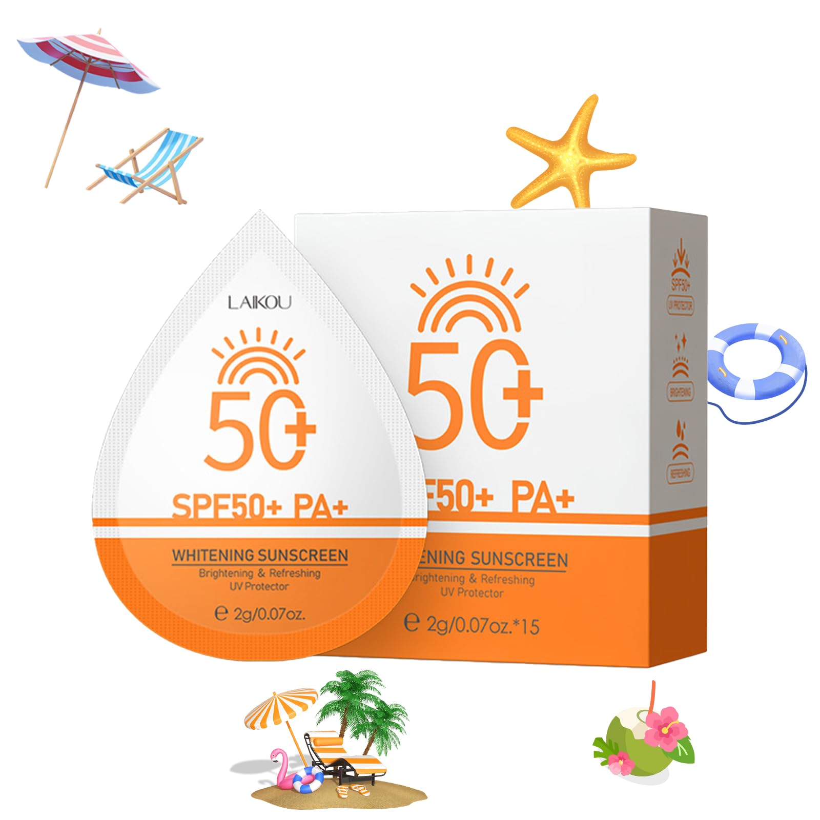 2g*15PCS Travel Size Sunscreen SPF50+ PA+ Mini Sunscreen for Face & Body Waterproof Non-Greasy Perfect for Outdoor Beach Daily Use Summer Party & Thank You Gifts 1.06 Ounce (Pack of 1)