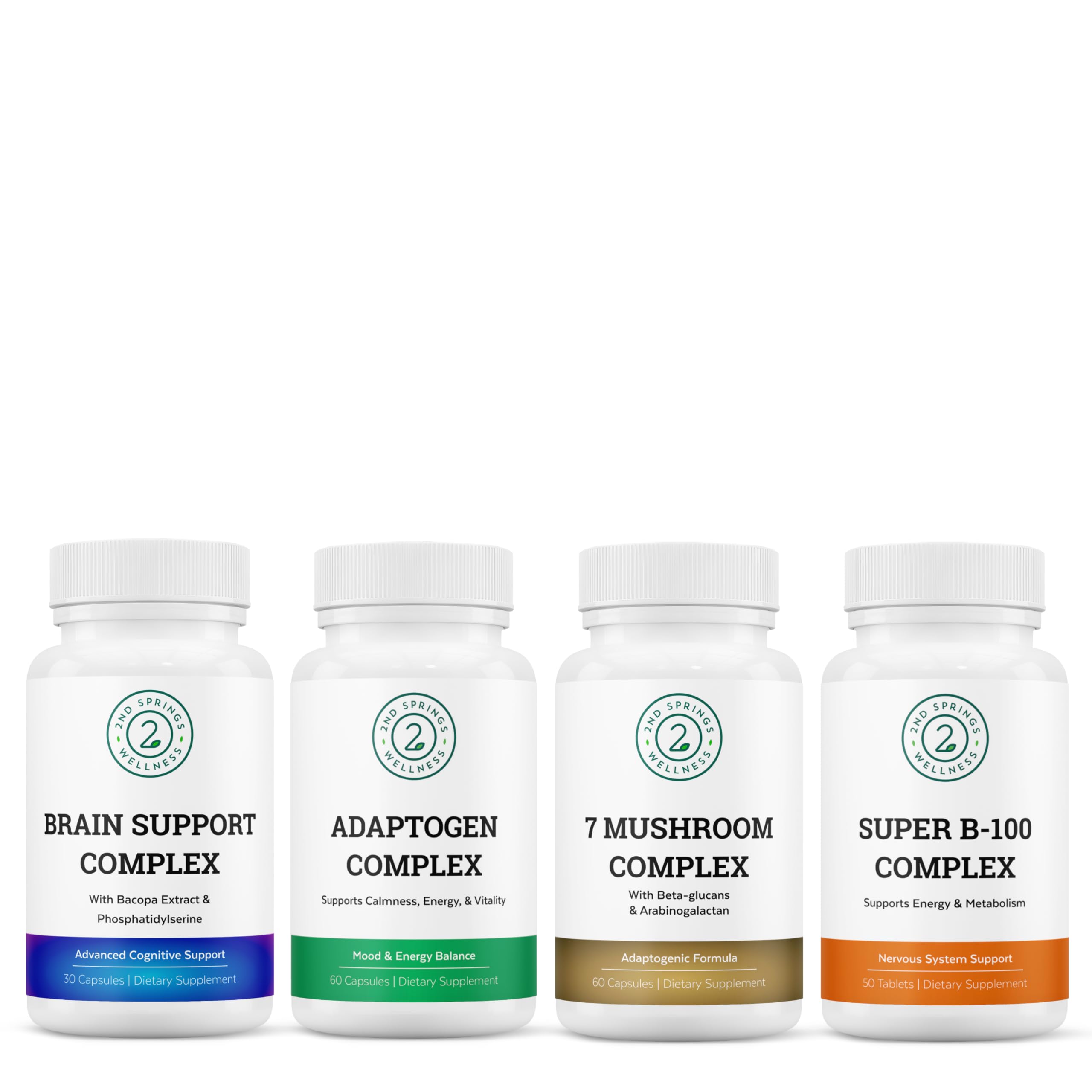 2nd Springs Mind & Body Harmony Bundle - 7 Mushroom & Brain Support for Cognitive Wellness Super B-100 & Adaptogen Complex for Energy & Stress Resilience