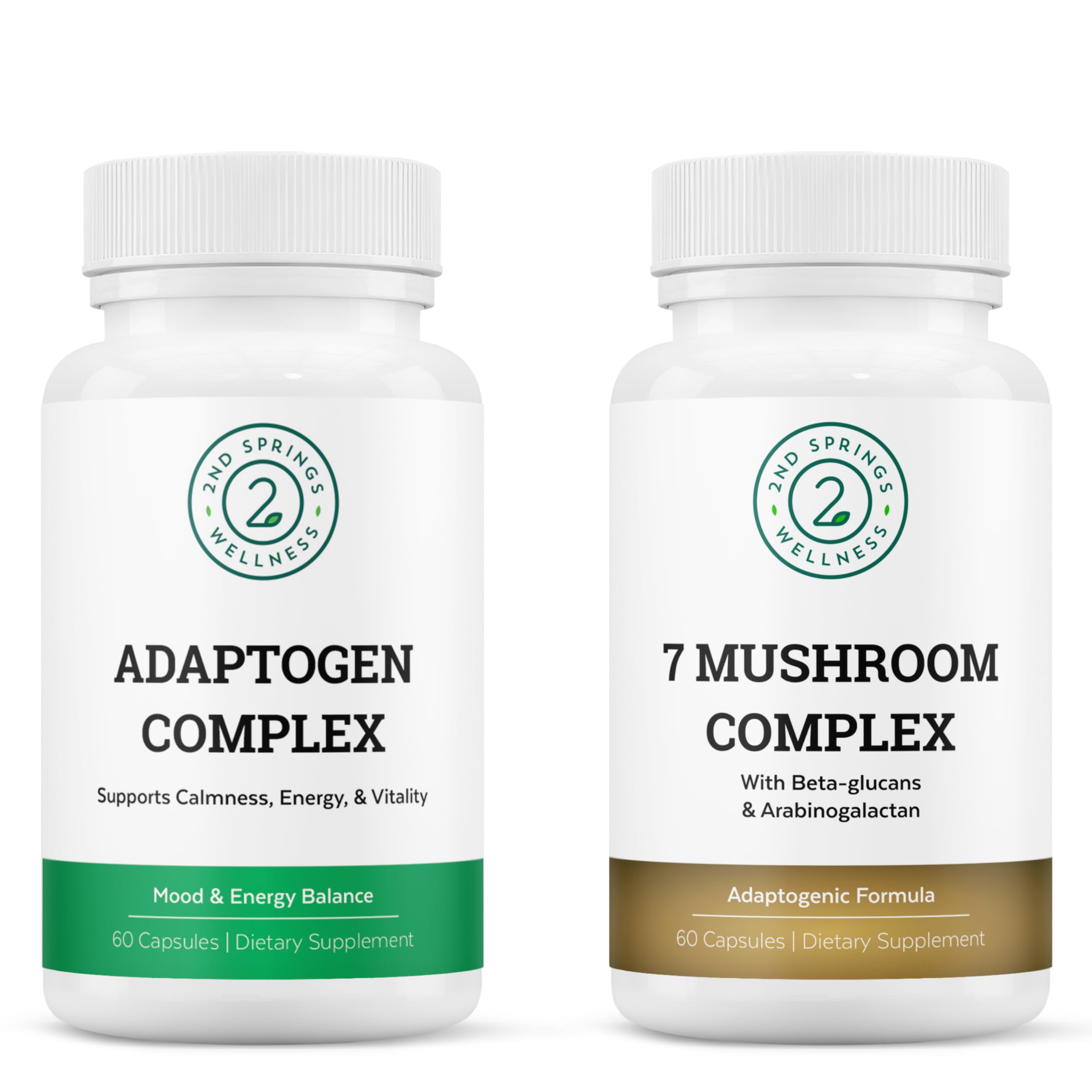 Comprehensive Support: This bundle combines the best of adaptogenic herbs and organic mushrooms, offering a holistic approach to well-being and comprehensive support for your daily health regimen. Natural Energy Boost: Experience sustained energy and mental clarity with adaptogens from Adaptogen Complex and the nootropic properties of organic mushrooms in 7 Mushroom Complex. Harmonious Balance: Achieve balance in mind and body with Adaptogen Complex, while 7 Mushroom Complex contributes to overall vitality and immune harmony. Adapt to Thrive: Adaptogen Complex provides resilience and supports your body's ability to adapt to daily challenges, while 7 Mushroom Complex fortifies your immune system and cognitive function. Dual Wellness Power: Unleash the potent benefits of adaptogens and organic mushrooms with this unique bundle of 7 Mushroom Complex and Adaptogen Complex.
