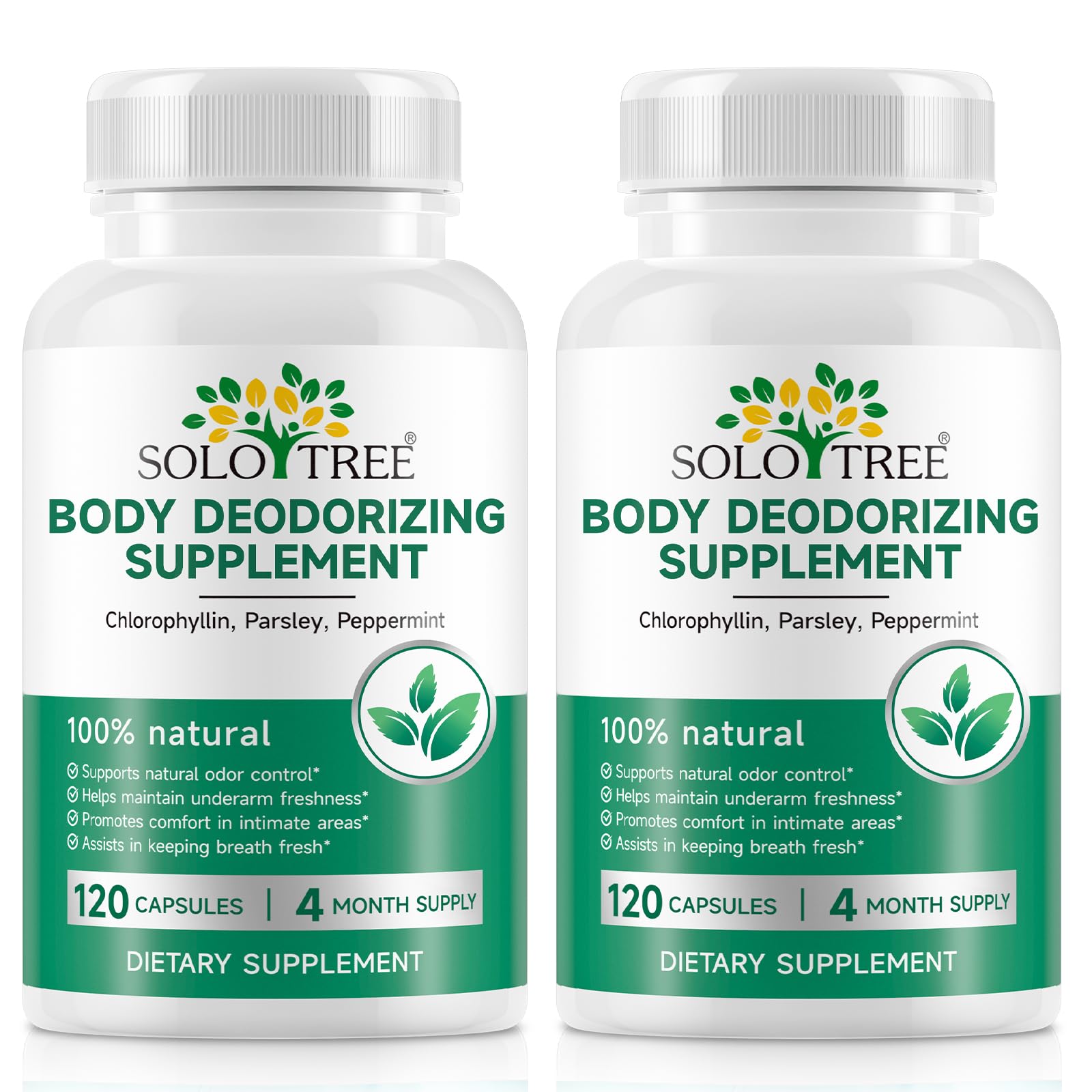 YOUR DAILY COMPANION FOR WHOLE-BODY ASSURANCE:Go beyond surface solutions. These capsules work from within to support your body's natural freshness for underarms, breath, and intimate areas—helping you feel clean, comfortable, and confidently present in any moment of your day. RECOMMENDED USE: Take one chlorophyll tablet daily to keep odors away. For stronger results, take two body odor pills—one in the morning and one in the evening. Swallow with water or mix into your diet. SUPPORTS OVERALL WELLNESS:Chlorophyll supplements supports skin clarity and gut balance. The blend of copper chlorophyllin, parsley, and peppermint works together to enhance health and keep your body feeling naturally fresh. 100 NATURAL TRIPLE GREEN POWER:Full Internal Deodorant Supplement with chlorophyllin 200mg, parsley leaf 300mg, peppermint 100mg to effectively target body odor, bad breath, and more. This potent formula helps neutralize odors from the inside out, keeping you feeling fresh and confident all day. CHLOROPHYLL CAPSULES:This body deodorizing supplement Supports natural odor control,elps maintain underarm freshness,Promotes comfort in intimate areas,Assists in keeping breath fresh.Natural ingredients to help you feel fresh and confident all day long.Supports natural odor control.
