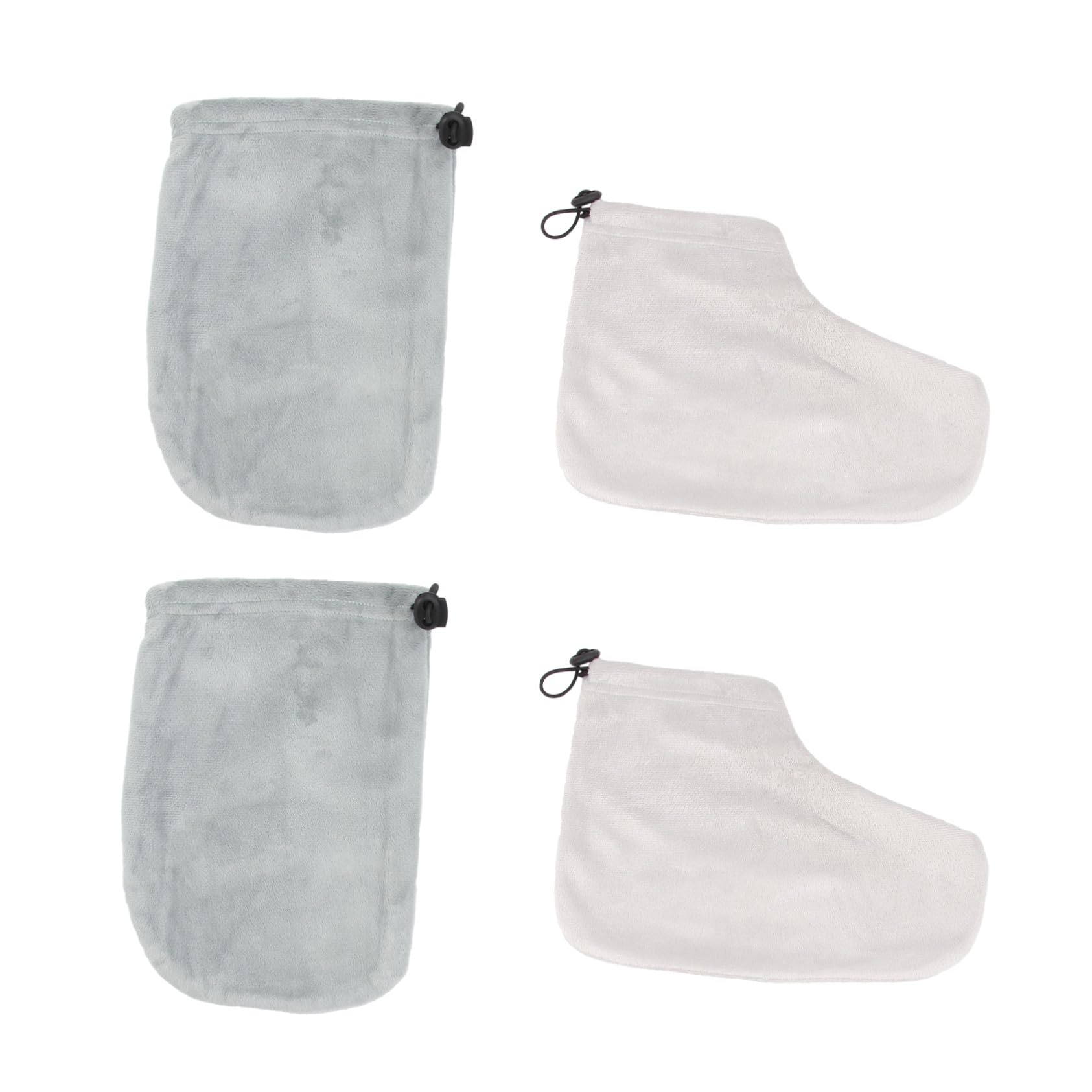 2paires Set Mitaines Et Coton Isolant Pour Bain De Paraffine Protection Thermique Pour Soin Spa Mains Et Accessoires Pédicure Professionnels Compatible Usage Salon Et Domicile Gris