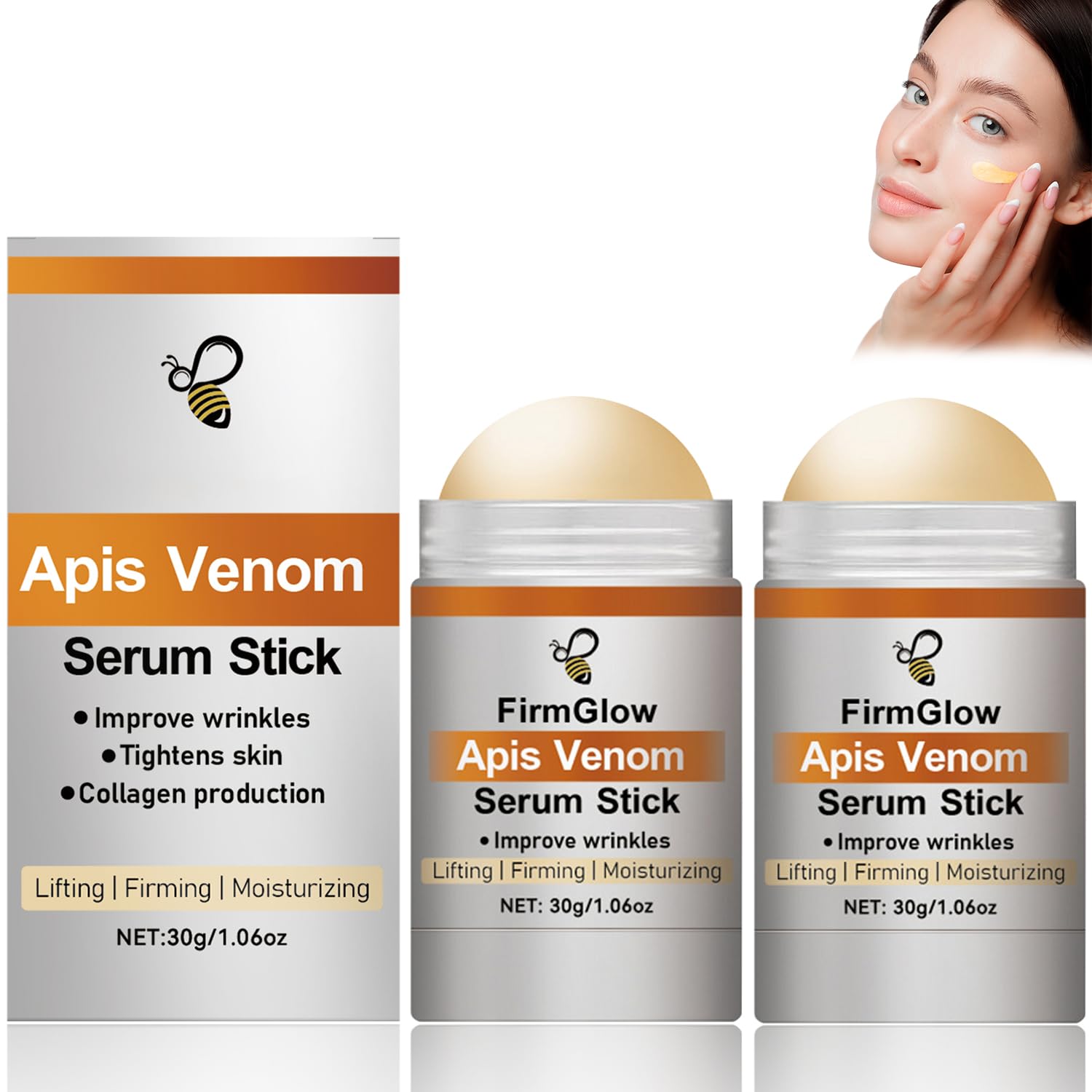 Suitable for all skin types An effective daily body moisturizer that is gentle on the skin. Suitable for all skin types, including dry skin, oily skin and sensitive skin. Convenient to Use Our Firming Sreum Stick is designed for easy and convenient use. Simply apply a small amount to cleansed skin and gently massage until fully absorbed. Bee Venom Firming Serum Bee Venom Firming Serum improves skin elasticity, plumps the skin, makes the skin healthier and fuller, reduces fine lines, and makes the skin firmer and younger. Deep Moisturizing Our unisex Bee Venom Firming Serum Stick's natural vegan ingredients boost hydration, revitalize the skin and deeply moisturize the skin. Gentle Formula This stick is made of natural materials, with a gentle texture and easy absorption, providing comprehensive care without irritating the skin, taking good care of your skin.