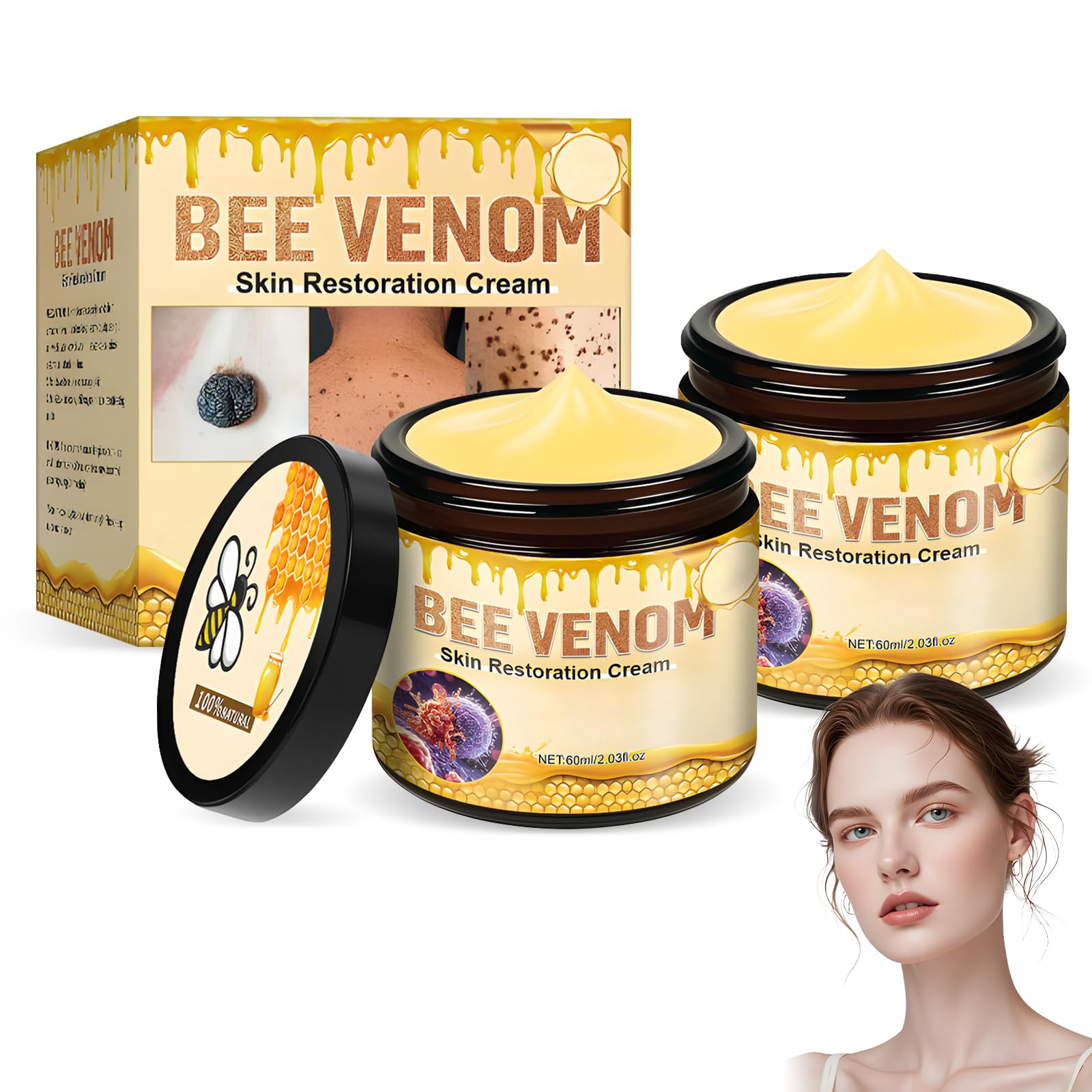 2PCS Bee venom Skin Restoration Cream Bee Venom Skin Treatment Cream Quickly Smoothing Out Wrinkles and Fine Lines Moisturizing & Repair for All Type