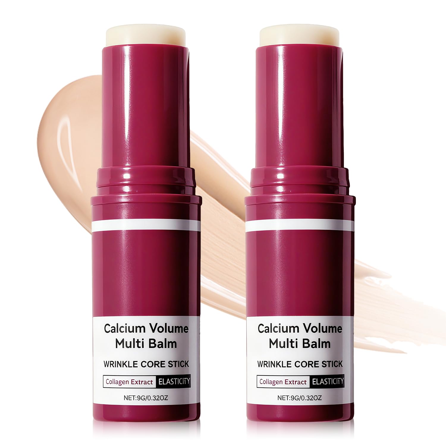 2PCS Calcium Multi Balm Calcium Volume Multi Balm Korean Wrinkle Core Stick Collagen Moisturing Stick Anti-aging Hydrating Firming Skin Almond & Vitamin E for Lip Balm Eye Cream