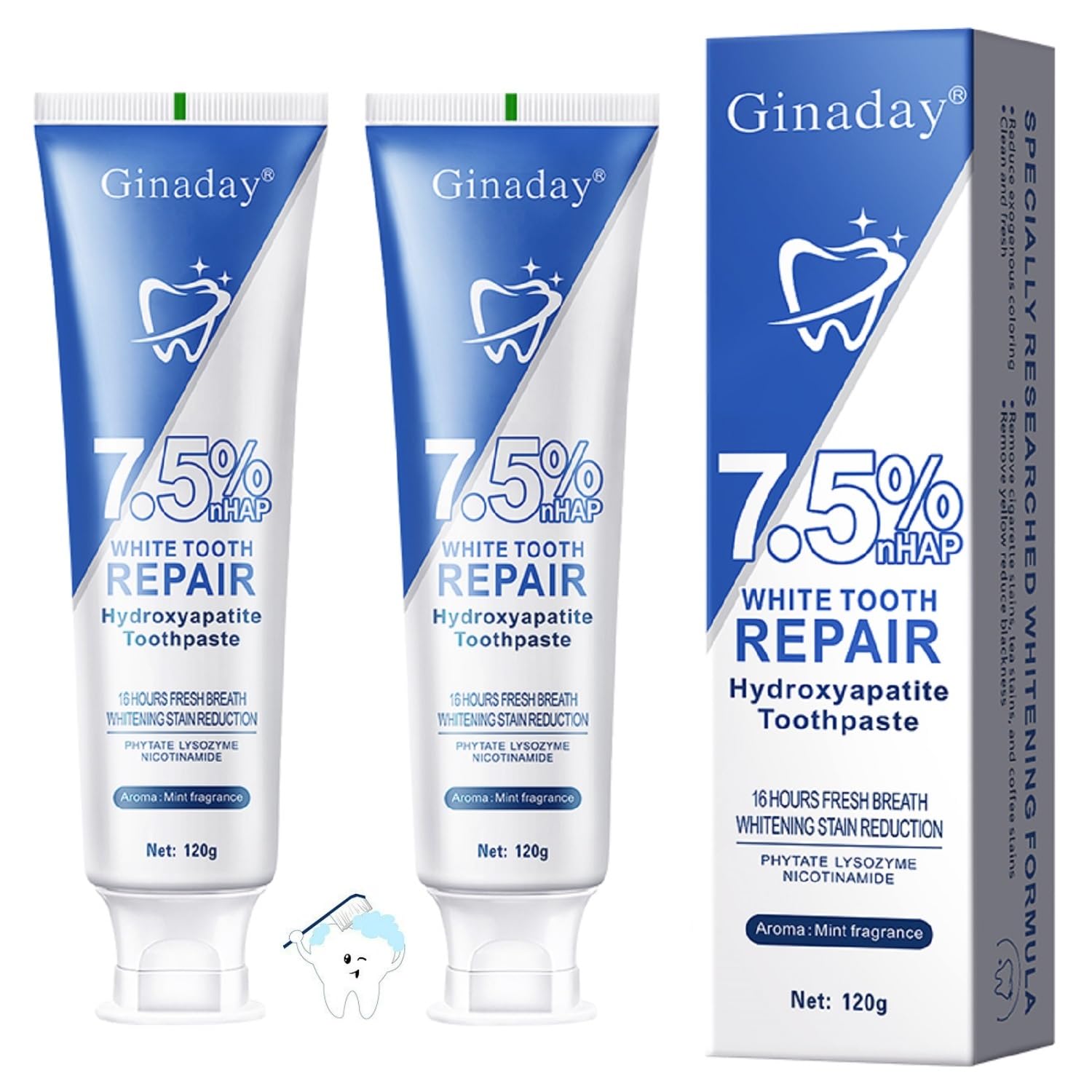 2Pcs Hydroxyapatite Toothpaste Hydroxyapatite Toothpastes for Enamel Protection and Tooth Strengthening Gentle Mint Fresh Breath Deep Cleaning Care.