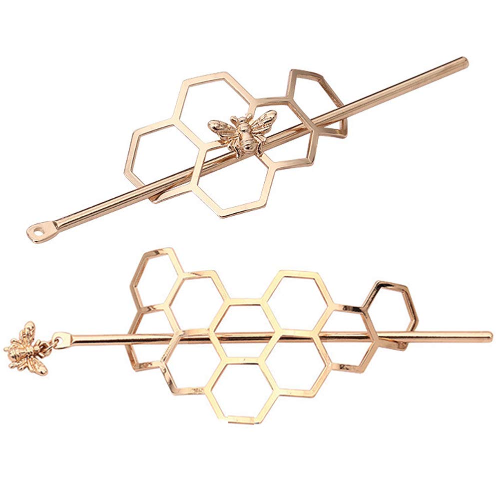 2Pcs Minimalist Dainty Metal Hair Sticks Forks Hairpins Hollow Geometric Bee Hair Pin Clips Chignon Buns Holder Hair Styles Jewelry Accessories for Women Girls Gold and Silver