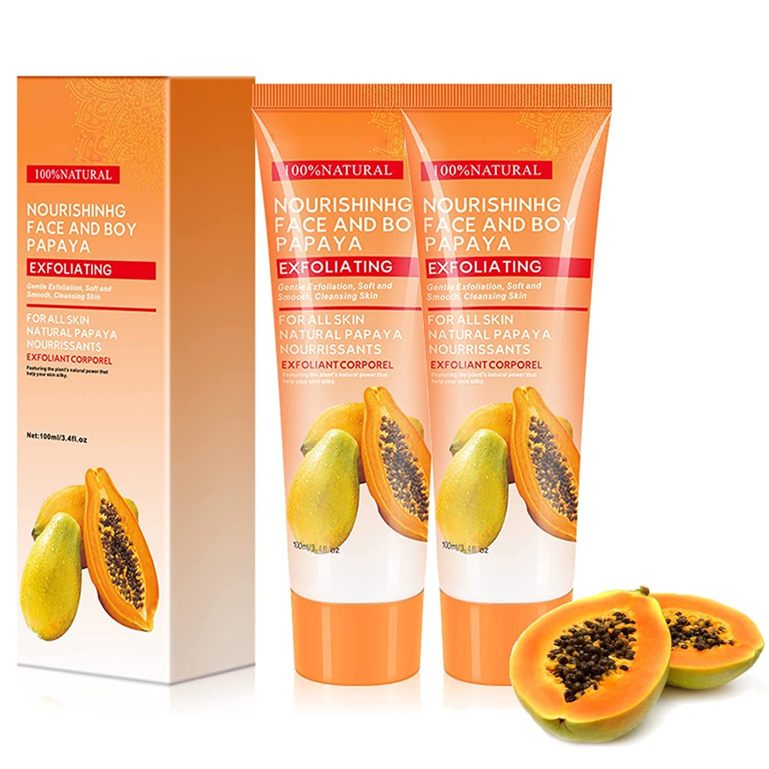 2pcs Papaya Deep Exfoliator Papaya Essence Exfoliating Scrub Cream Deep Exfoliator Papaya Scrubs