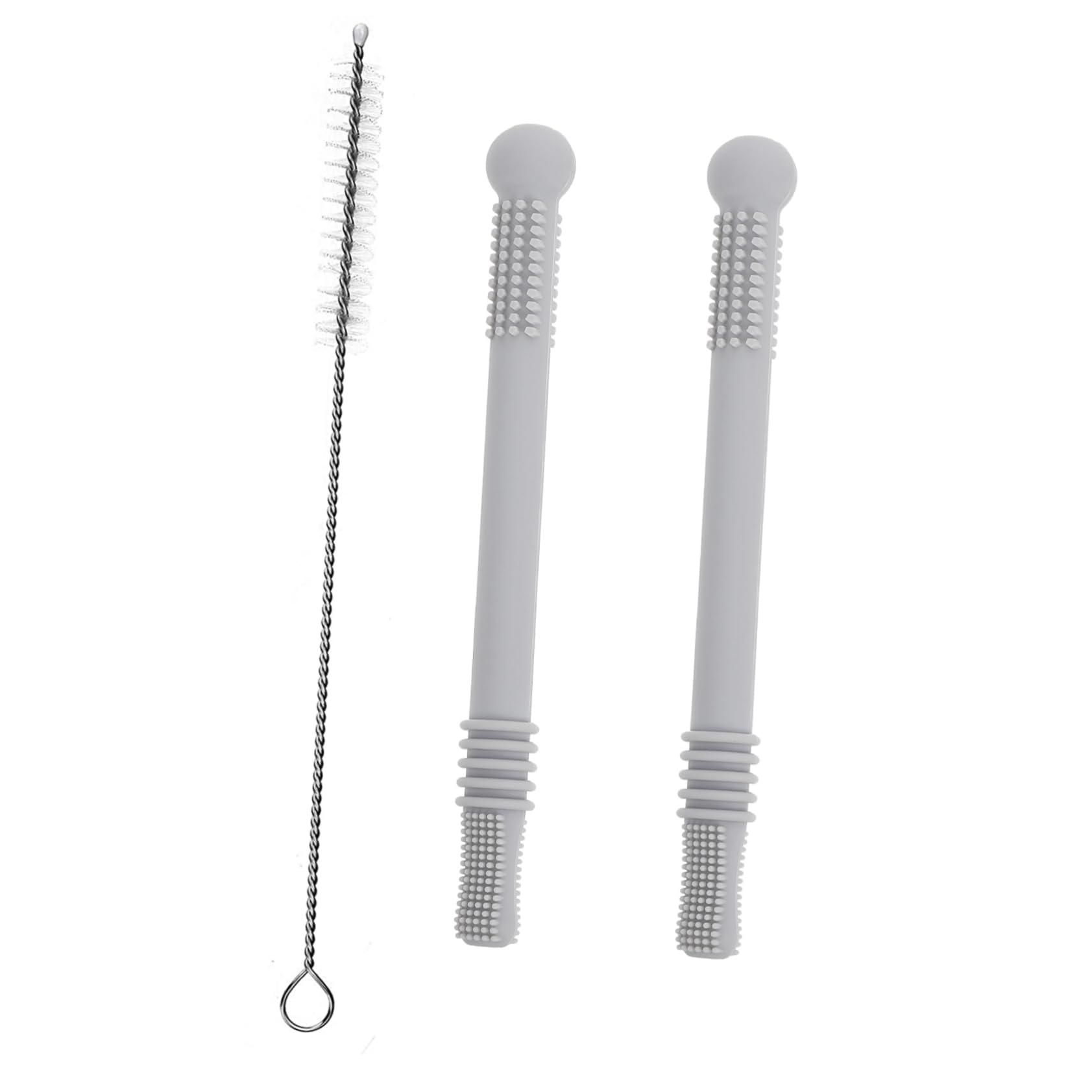 2pcs Silicone Teething Toy Soft Hollow Straw Shape for Safe Chewable Design Double-Sided Convex Spots for Gums Gray Light Grey