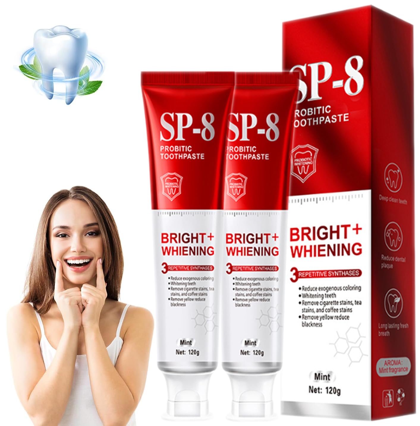 2PCS SP-8 Toothpaste SP-8 Probiotic Whitening Toothpaste for Fresh Breath Protects Teeth & Oral Health Rich Foam & Easy Rinse Deep Cleaning Care