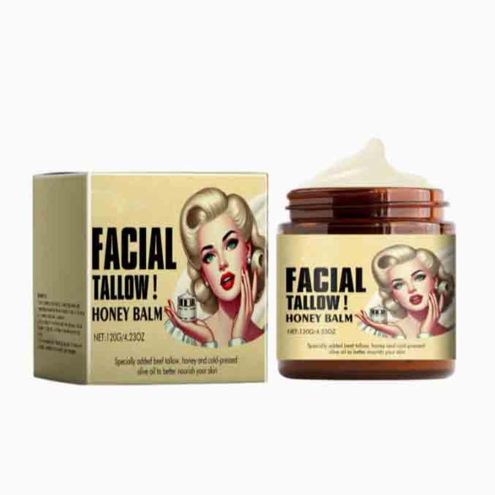 Description: 1. Nourish the skin, improve dry and rough skin, and can be used with confidence even on sensitive skin. 2. Suitable for dry and cracked skin, providing the skin with the moisture and nutrients it needs, making your skin glow with a healthy, hydrated glow. 3. Infused with grass-fed beef tallow and honey, which are rich in vitamins and can better nourish the skin. 4. Can be used as face cream, body cream, foot cream and hand cream, as well as lip balm. Suitable for all skin types. Product details: Net Content: 120 g Shelf life: 3 years WARNING: Please keep out of reach of children. Do not swallow. Please clean your hands before use to ensure the best results from the product. Discontinue use if signs of irritation or rash occur. Store in a cool and dry place. How to use: 1. Clean the skin and keep it clean. 2. Take an appropriate amount of cream on the palm of your hand, warm the cream with your palms, apply it to the skin, and massage until absorbed.Multi-purpose care, suitable for the whole body:This balm is not only suitable for facial care, but can also be used for dry skin in various parts of the body, such as hands, feet, legs and arms. Whether it is daily moisturizing or special care, it can meet different needs. Its unique formula design makes it comfortable to touch and pleasant fragrance every time it is used, making it an ideal choice for your whole body care. The whole family can use it with confidence, simplifying the skin care routine, saving time and cost. Handmade, quality assurance:Each bottle of beef tallow and honey balm is handmade by experienced craftsmen, ensuring that each step strictly follows traditional craftsmanship to retain the best activity of the ingredients. From the selection of materials to the packaging of the finished product, every link is carefully controlled to ensure the high quality and consistency of the product. This attentive production process not only reflects respect for nature, but also brings consumers a unique skin care experience. Soothing and repairing, relieving skin discomfort:It can effectively relieve skin discomfort caused by dryness, allergies or other external stimuli, such as redness, itching and burning. Beef tallow helps repair damaged skin barriers and enhance skin resistance. This balm is particularly suitable for sensitive skin and areas that need extra care, such as elbows, knees and heels, which are prone to dryness , providing gentle and long-lasting care for the skin. Deep moisturizing, long-lasting moisturizing:Tallow has excellent moisturizing ability, which can quickly penetrate the bottom layer of the skin, replenish moisture and lock in moisture to prevent dryness and desquamation. Wild honey is rich in natural sugars and antioxidants, which can form a protective film on the surfa ce of the skin to further enhance the moisturizing effect. After use, the skin immediately feels noticeably moisturized and soft, and remains moisturized for a long time, especially suitable for dry skin and winter use. Natural ingredients, pure and no additives:This tallow and honey balm is made entirely of natural ingredients, using high-quality tallow from grass-fed cows and unprocessed wild honey, without adding any artificial flavors, colors or chemical preservatives. All materials are carefully selected by hand to ensure that each bottle of product maintains the purest natural properties. Suitable for consumers who pursue the concept of natural skin care, providing safe and reliable skin care options.