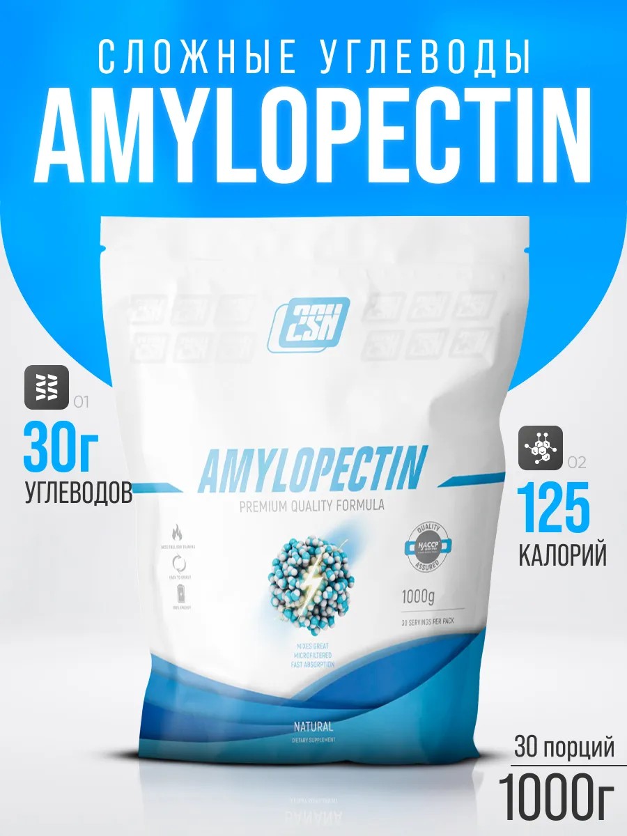 Амилопектин бренда 2SN является богатым источником сложных углеводов. Они медленно усваиваются и за счет этого способствуют быстрому наращиванию мышечной массы и увеличению энергии.
