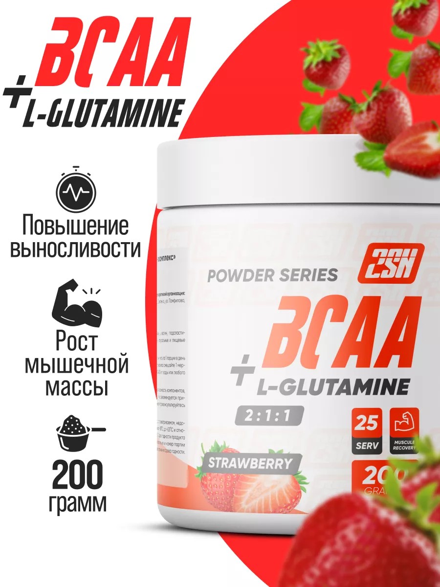 2SN Аминокислота BCAA глютамин клубника, 200г
