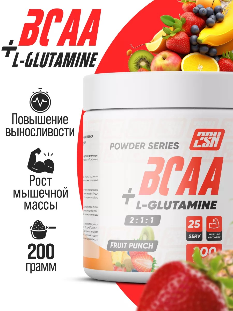 2SN BCAA, аминокислоты БЦАА 2 1 1+Глютамин порошок, 200г