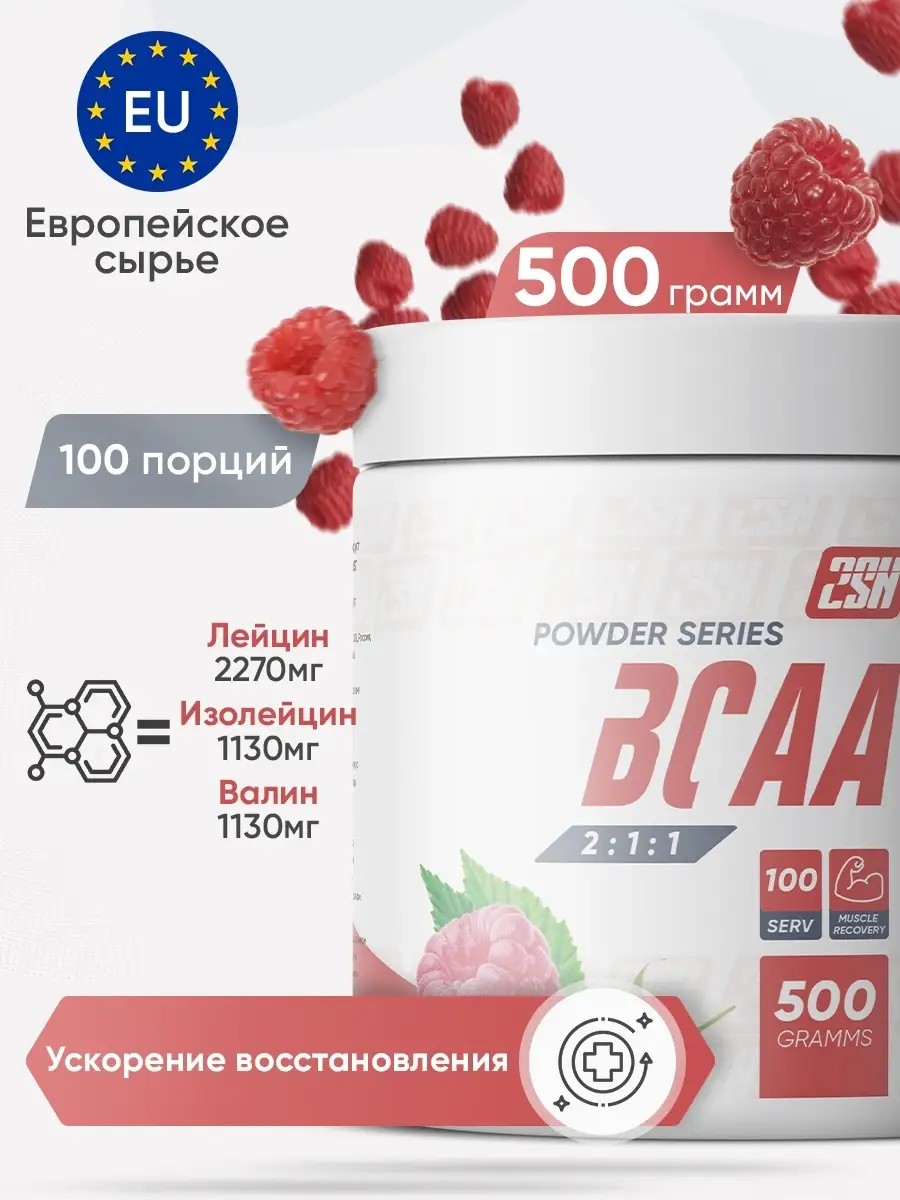 2SN BCAA аминокислоты БЦАА порошок малина 500г