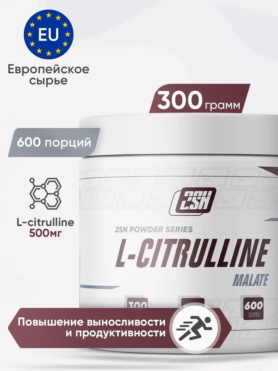 2SN Цитруллин - это аминокислота, которая: расширяет кровеносные сосуды, снижает артериальное давление и нагрузку на сердце, улучшает кровоснабжение мышц, они выглядят более рельефными, помогает выводить аммиак и молочную кислоту, появляющиеся во время интенсивных физических упражнений, снимает боль и усталость. Добавление в цитруллин яблочной кислоты - малата - стимулирует прилив крови и кислорода к мышцам, что дополнительно повышает выносливость спортсмена и его эффективность. Ежедневный прием L citrulline malate увеличивает вашу выносливость, ускоряет восстановление после тренировки, приносит пользу сердцу и сосудам. Банки 300 грамм хватит на 600 порций! Попробуйте и оцените результат:)