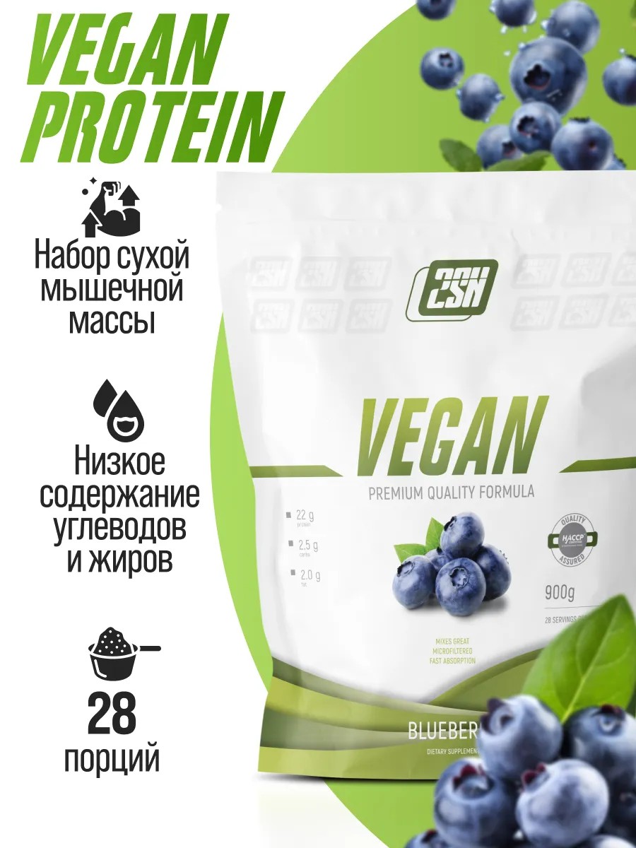 2SN Протеин растительный веганский, черника, 900г