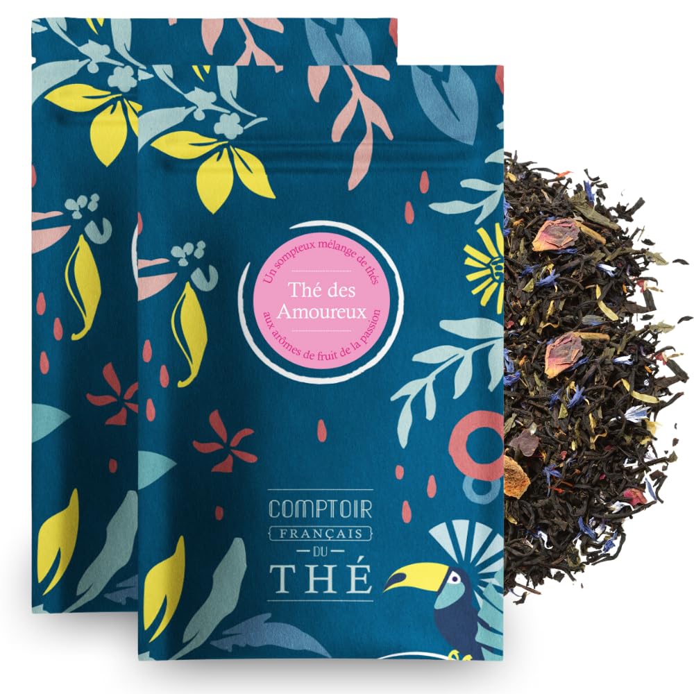 [BUDGET CONTROL] Buy in bulk, control quantities and expenses, and enjoy discovering a variety of teas. [ECO-FRIENDLY] Reuse containers, reduce packaging, and make environmentally conscious choices. [NATURAL BENEFITS] Ingredients with anti-inflammatory properties for a soothing moment of relaxation. [UNIQUE FLAVORS] Floral and fruity notes, a tangy aftertaste, and orange peel for an unforgettable taste experience. [LOVERS' TEA] An exquisite blend of green and black tea, flavored with passion fruit, rose petals, marigold, cornflower, and safflower, in a 100g resealable bag.[BUDGET MAÎTRISÉ] Achat en vrac, contrôle des quantités et des dépenses, plaisir de découvrir plusieurs thés. [ECOLOGIE VERTUEUSE] Réutilisation des contenants, réduction des emballages, choix respectueux de l'environnement. [BIENFAITS NATURELS] Ingrédients aux vertus anti-inflammatoires, pour un moment de détente bienfaisant. [SAVEURS UNIQUES] Notes florales et fruitées, arrière-goût acidulé, écorces d'orange, pour une expérience gustative inoubliable. [THÉ DES AMOUREUX] Mélange exquis de thé vert et noir, arômes de fruit de la passion, pétales de rose, souci, bleuet, carthame, sachet refermable de 100g.2x100g de Thé Noir et Vert au Fruit de la Passion - Délicieux Chaud ou Glacé Thé Des Amoureux COMPTOIR FRANÇAIS DU THÉ