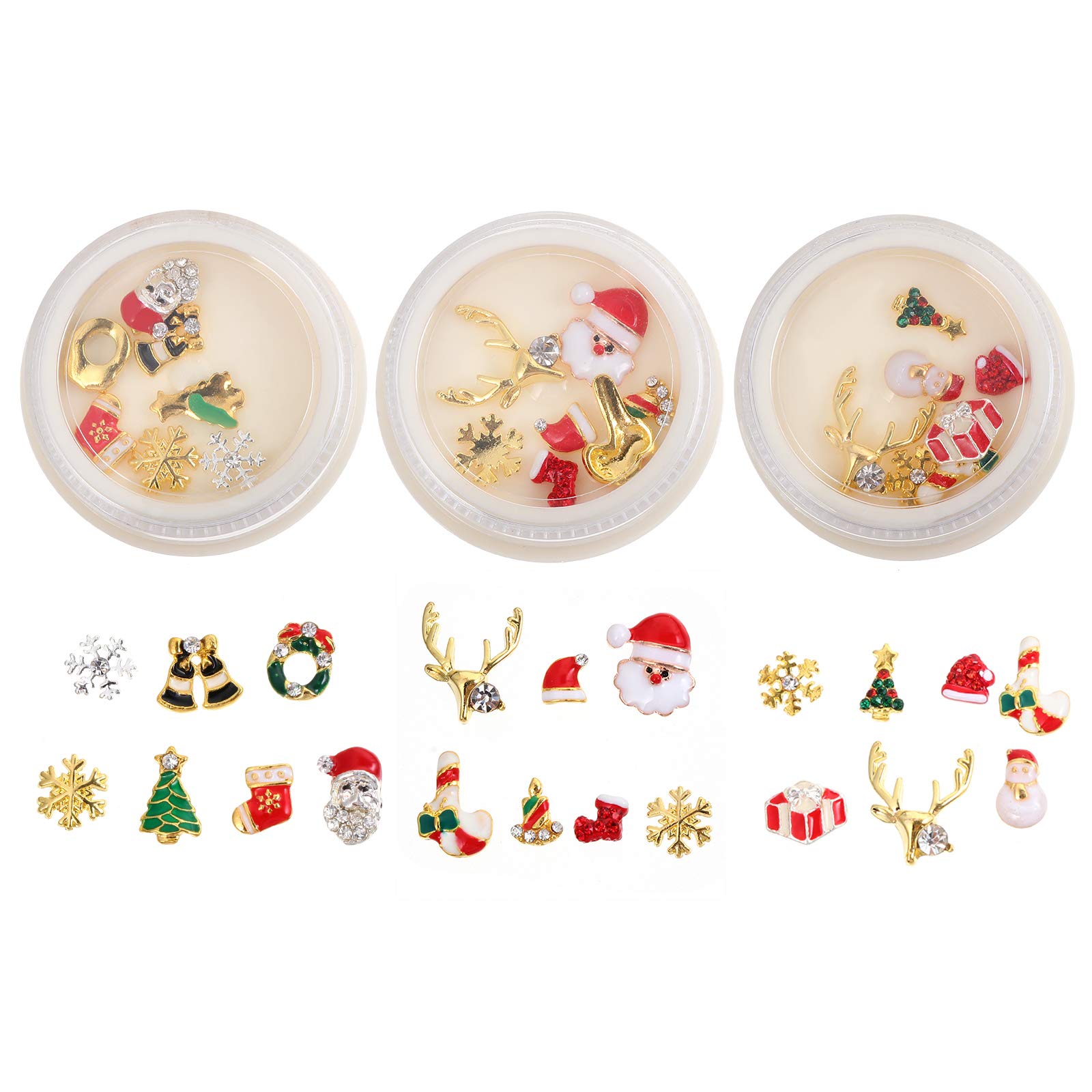 3 Boxes Nail Art Accessories Christmas Nail Decorations Creative Nail Decorations Nail Diamond Rhinestones for Nails Holiday Metal Nail Sticker Nail Gems and Charms Manicure Tools
