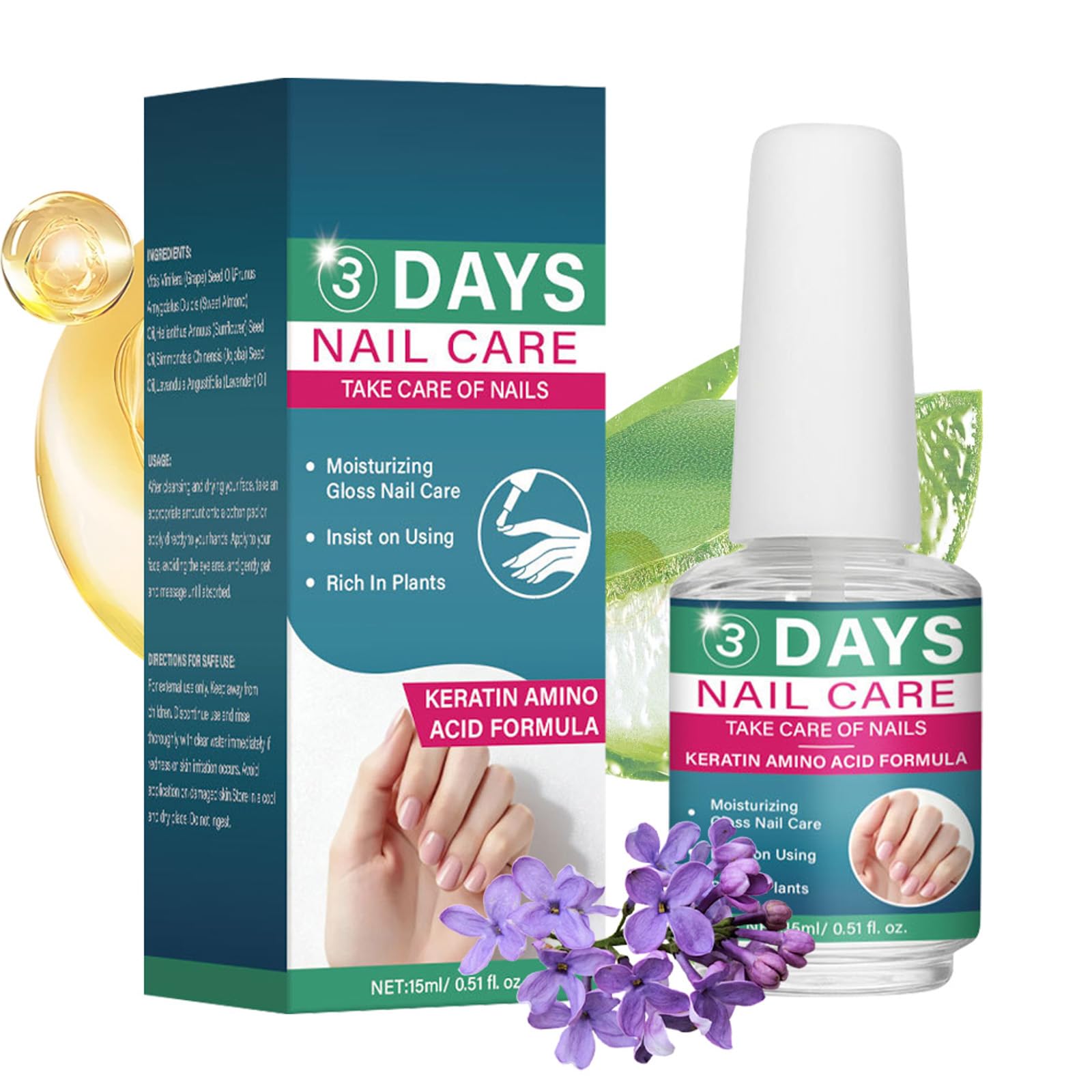 3 Day Nail Care, 3 Days Nail Care, huile pour cuticules avec ingrédients naturels et vitamine E, huile de soin pour ongles abîmés (1, 15 ml) 15 ml (Lot de 1) 1