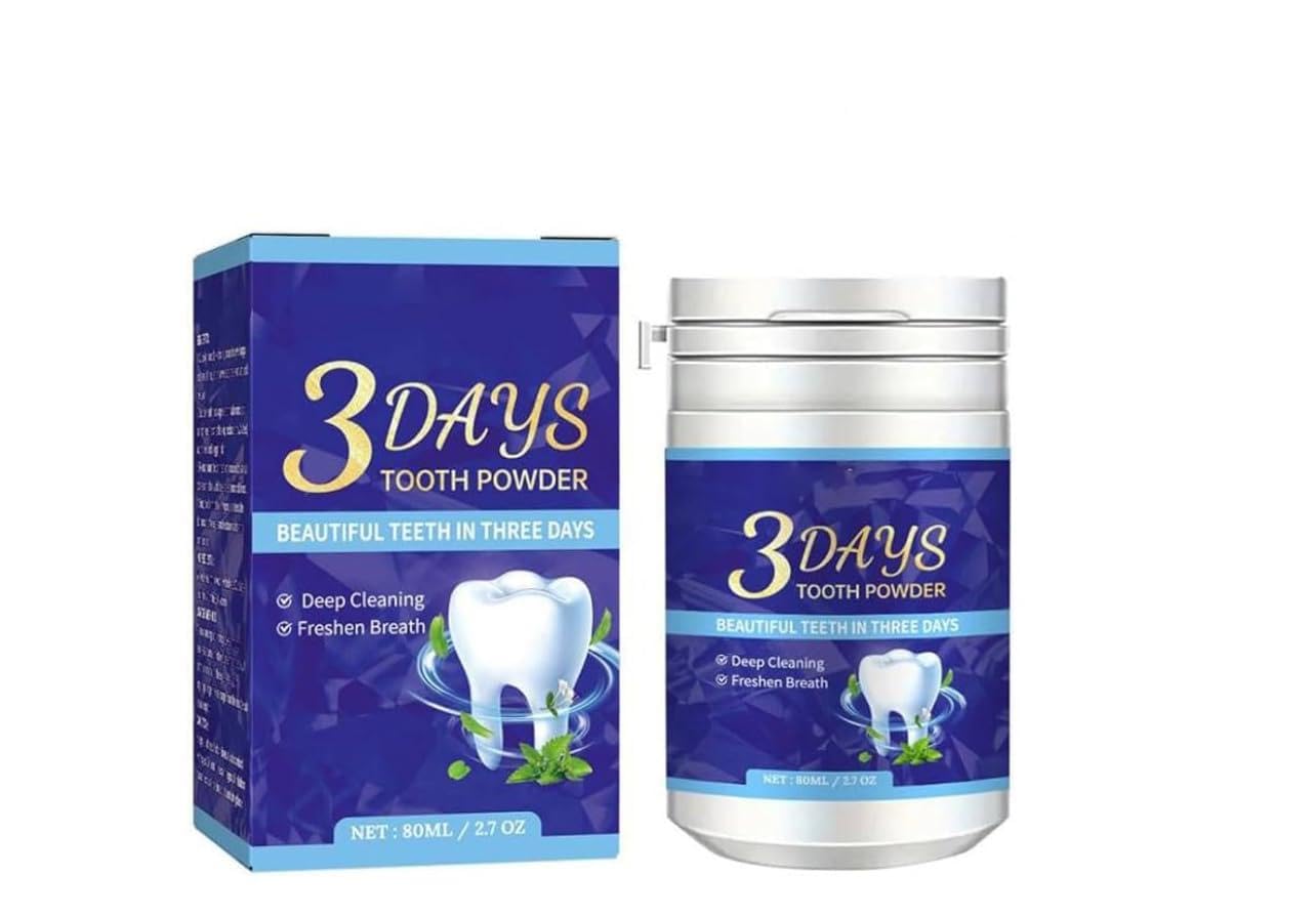 EASY APPLICATION: Simple-to-use powder format allows for precise application and thorough coverage of teeth surfaces. CONVENIENT SIZE: Each container holds 80ML 2.7 OZ of tooth powder, perfect for regular daily use. FRESH BREATH: Specially formulated ingredients help eliminate odor-causing particles for long-lasting fresh breath. DEEP CLEANING: Professional-grade powder effectively removes surface stains and discoloration while cleaning hard-to-reach areas. RAPID RESULTS: Advanced tooth powder formula designed to deliver noticeable whitening results within three days of regular use.