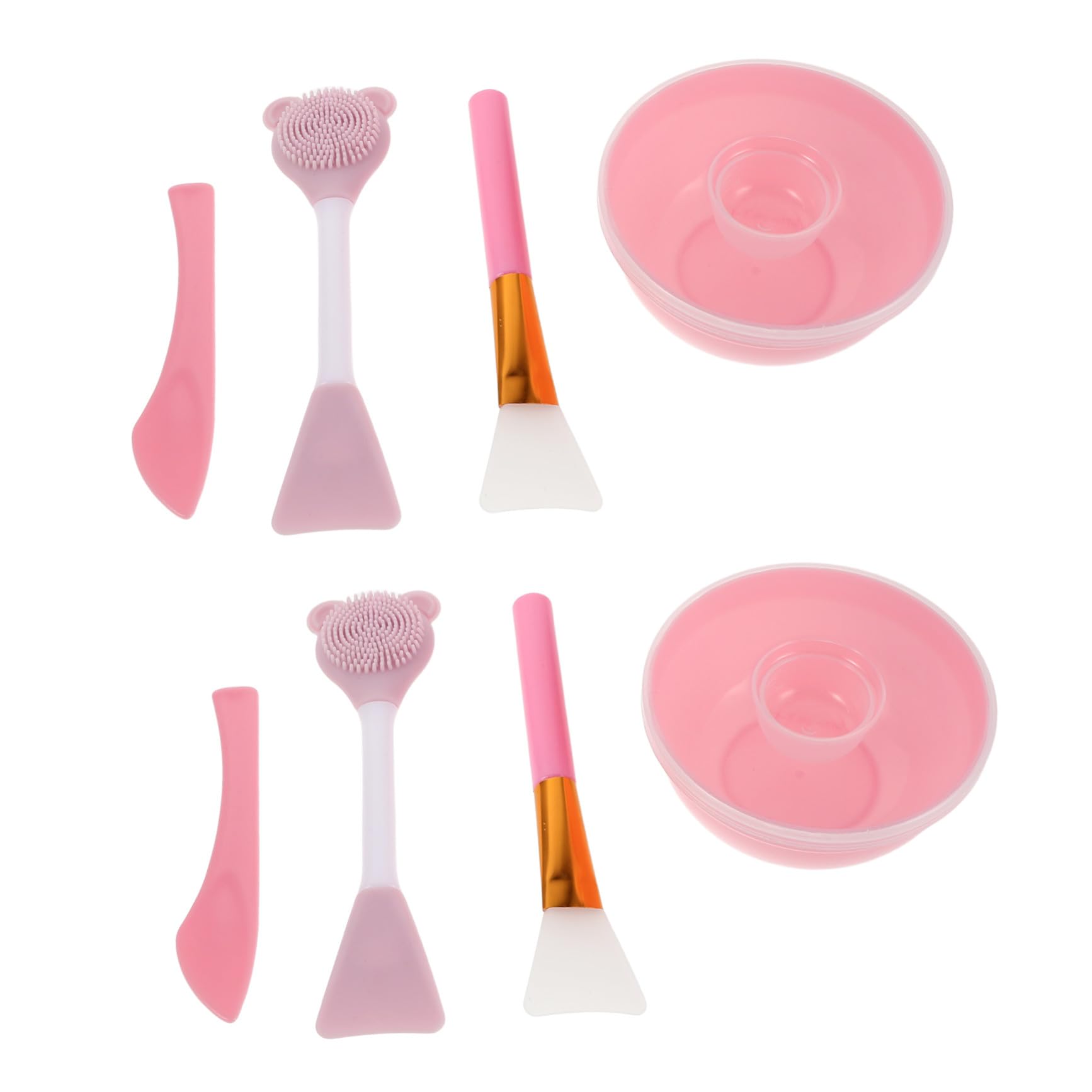 3 Ensembles Set de Bols pour Masque Facial avec Brosse Double Tête Silicone Applicateur Multifonction pour Soins Du Visage Kit Maquillage Portable pour Esthéticiennes et Usage DIY Rose