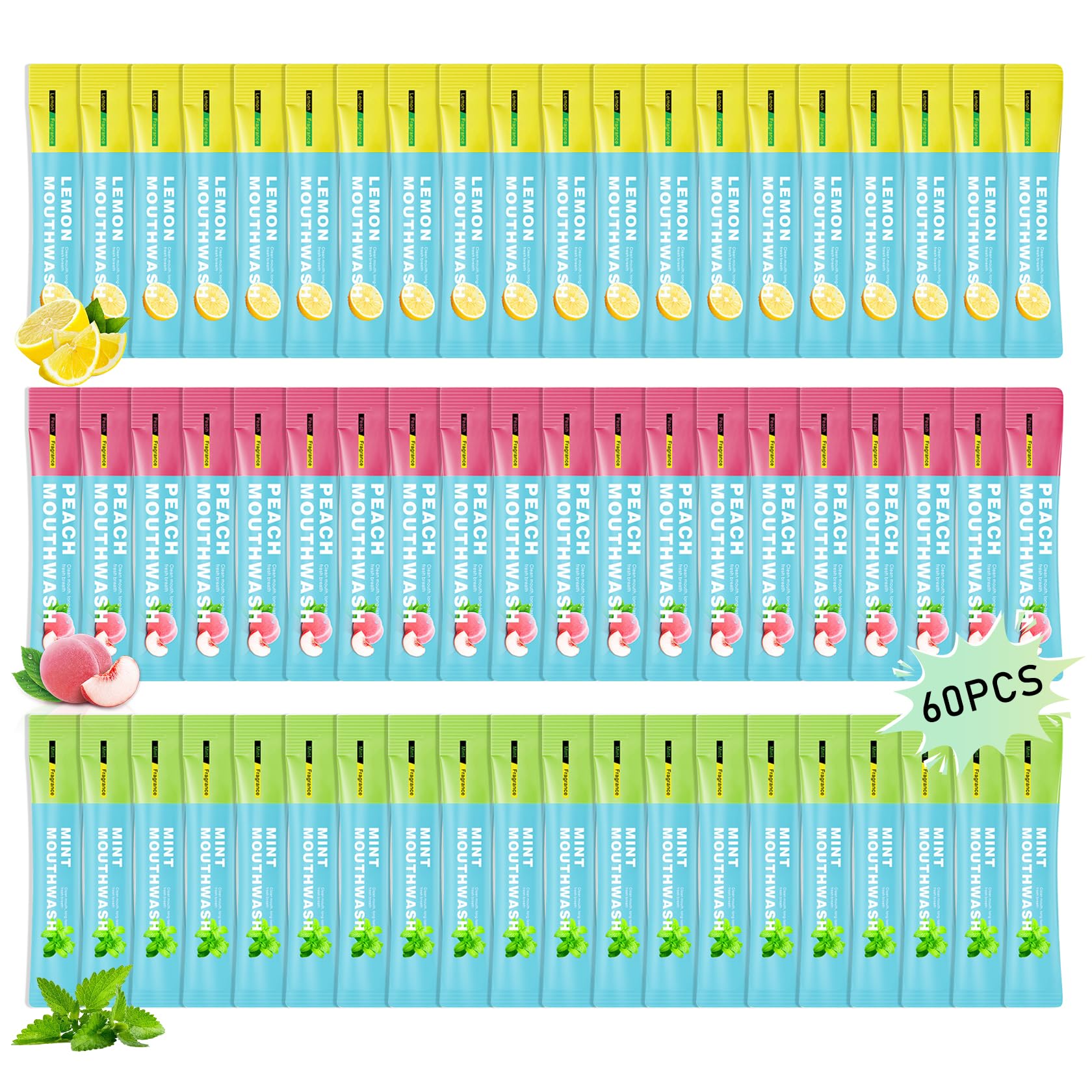 3 Flavors Mini Mouthwash Travel Size Portable Individual Travel Mouth Wash for Fresh Breath Refreshing Long Lasting Gentle Oral Care Mouthwash Packs(Pack of 60)