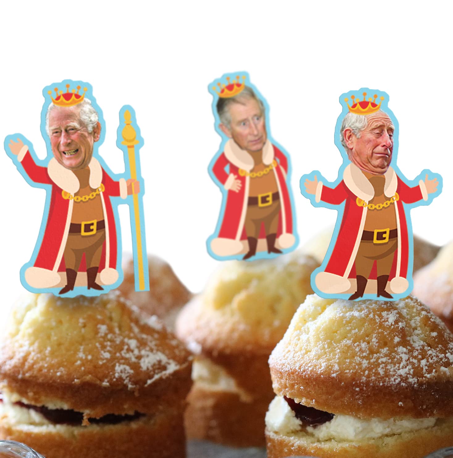 *3 for 2 offer* Cakeshop 24 x 4cm King Charles III 3rd Funny Faces Stand-Up Photo Edible Cupcake Toppers Cake Decorations - Premium Wafer Precut