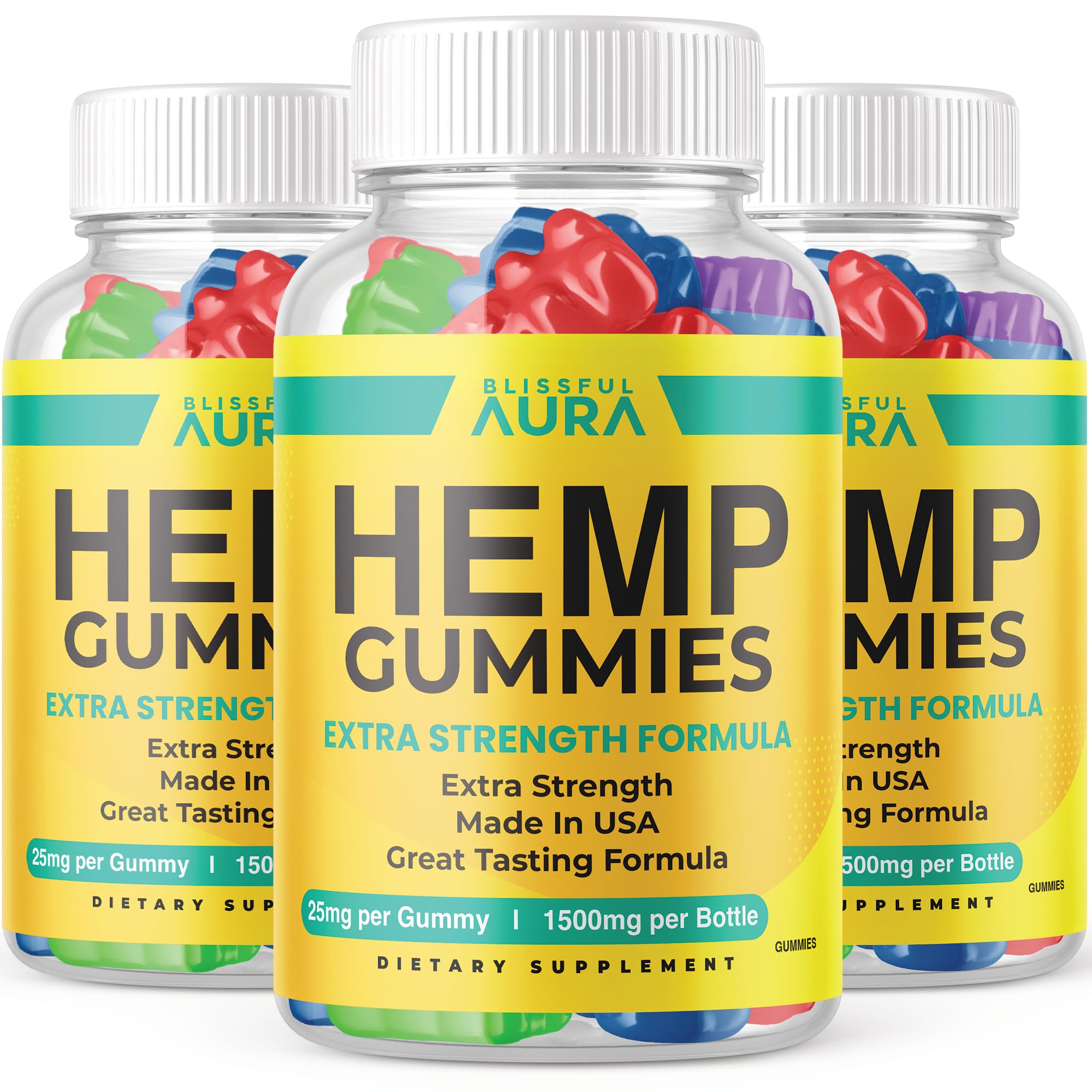 (3 Pack) Blissful Aura Gummies - Official Formula - BlissfulAura Gummies with Hemp Extract Extra Strength Advanced Formula Big Size Great Taste New 2023 Blissful Aura Hemp Gummy 1500mg (180 Gummies)