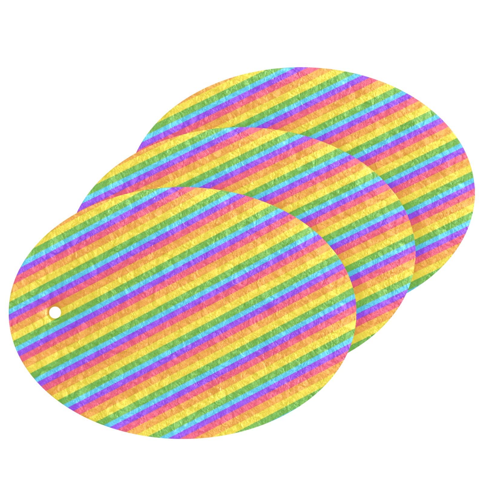 3-Pack Cleaning Kitchen Sponges Oval Bright Rainbow Stripes Kitchen Cellulose Dishwashing Wood Pulp Cotton