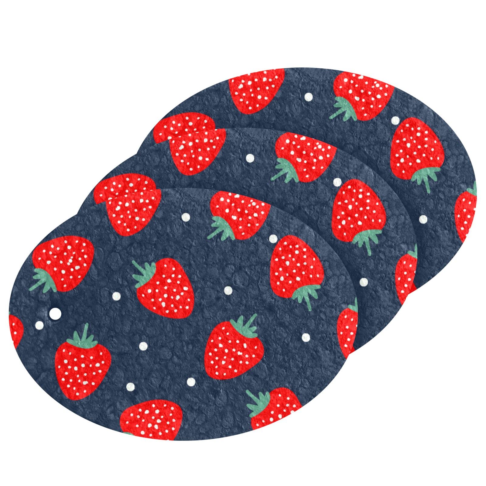 3-Pack Cleaning Kitchen Sponges Oval Red Cute Strawberry Kitchen Cellulose Dishwashing Wood Pulp Cotton one sizex3 Red Cute Strawberry