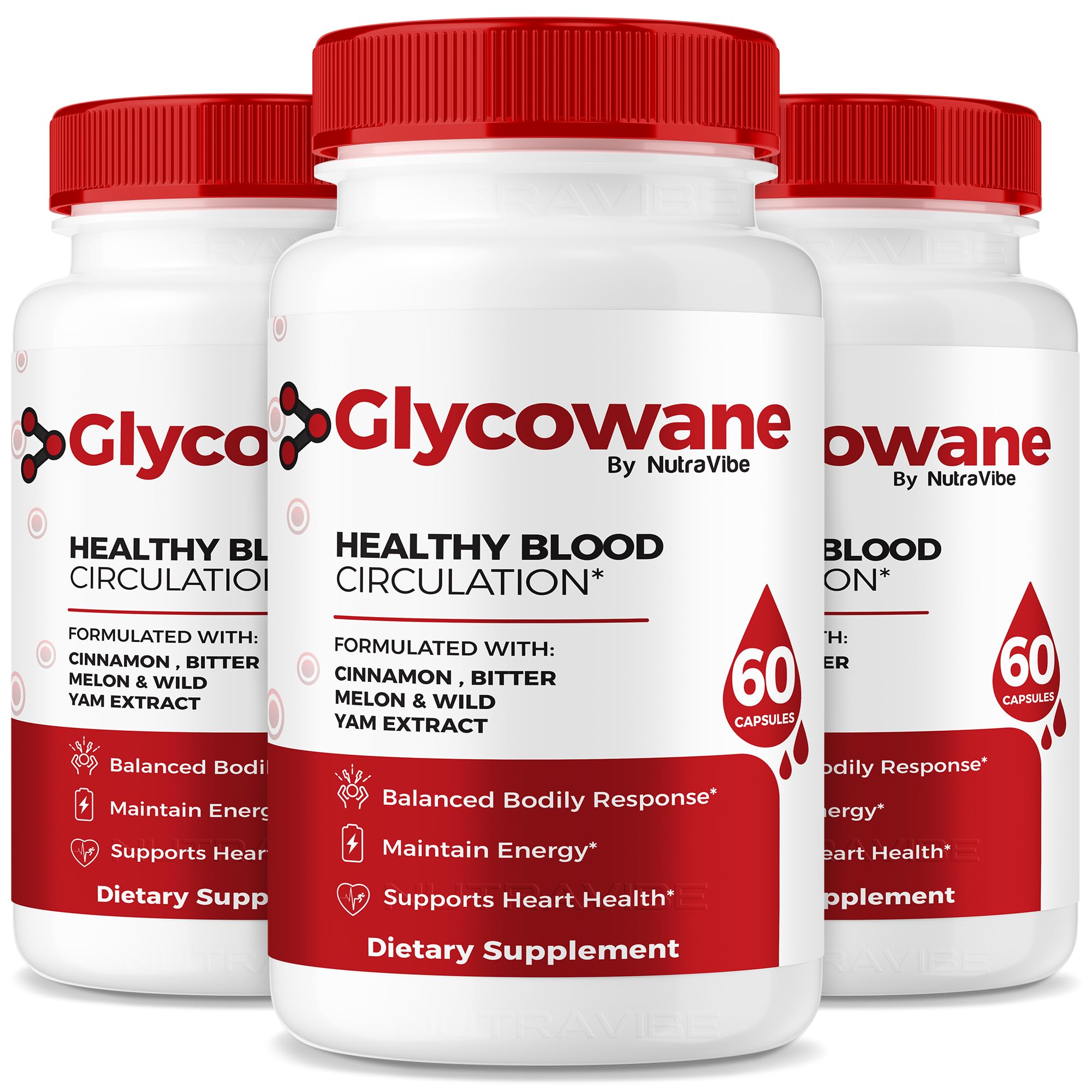 (3 Pack) Glycowan Blood Support Pills Official Glycowane Capsules Glyco Wan Advanced and Balanced Fomula with Powerful Ingredients (180 Capsules)