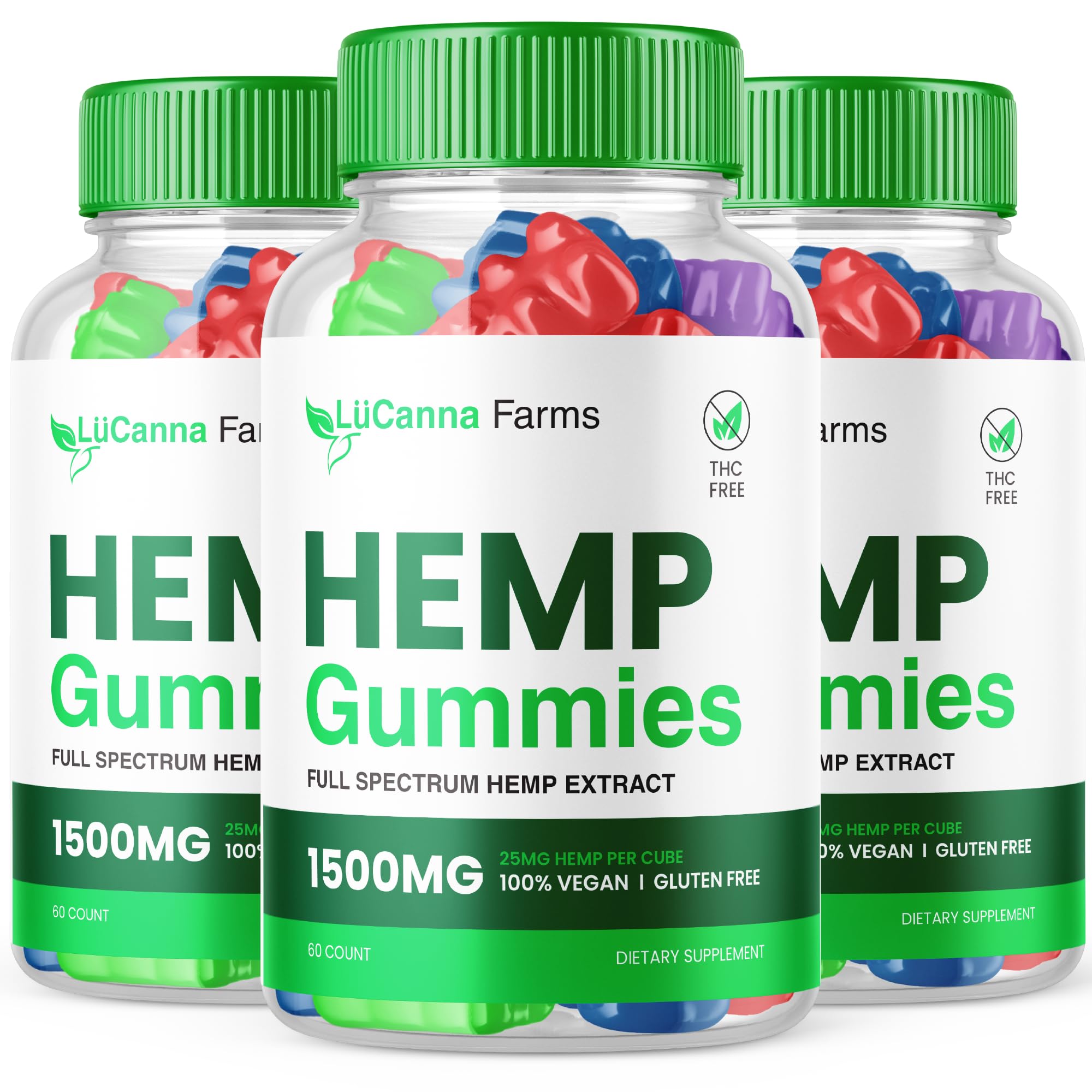 (3 Pack) Lucanna Farms Gummies Lucana Farms Hemp Gummies Advanced Formula Maximum Performance Hemp Blend LucannaFarms Gummies Supplement 25mg per Gummy 1500mg per Bottle Reviews New (180 Gummies)