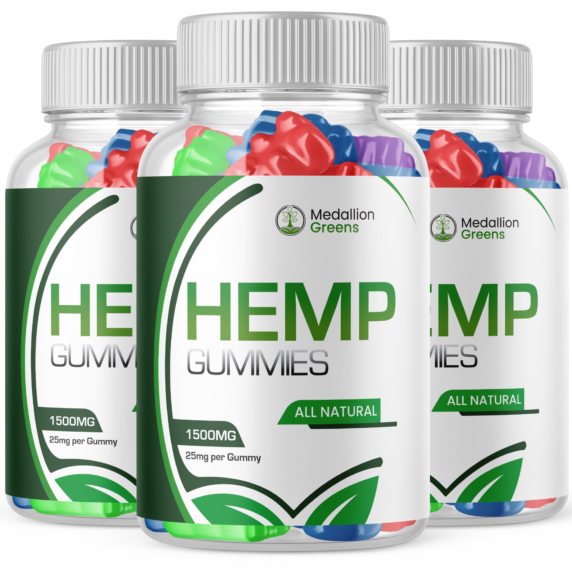 (3 Pack) Medallion Greens Gummies - Medallion Greens Hemp Gummies Advanced Strength Performance Hemp Blend Formula Big Size Gummy with 25mg Hemp Extract Great Taste 1500mg Per Bottle (180 Gummies)